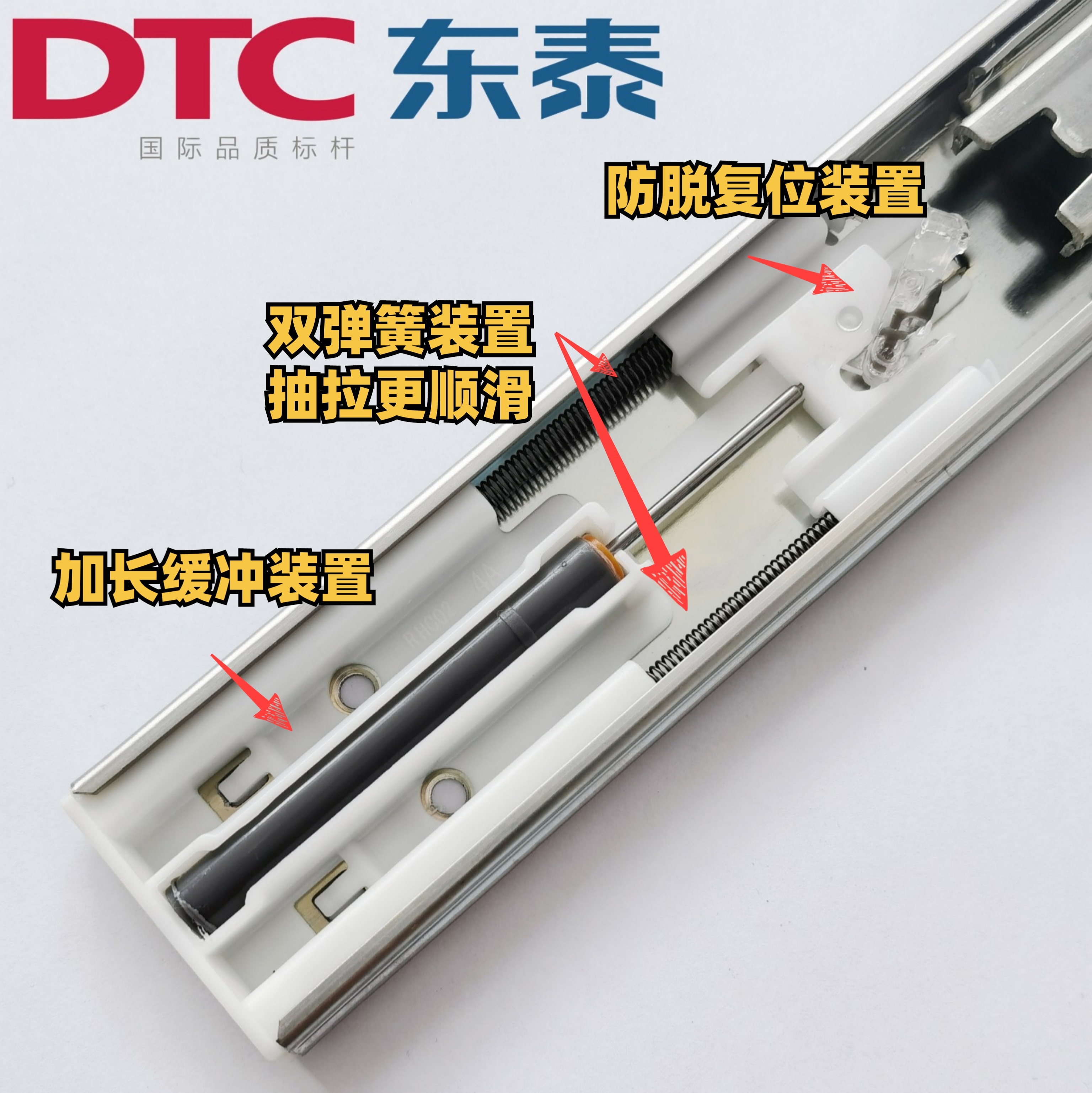 东泰DTC五金抽屉轨道侧装三节阻尼缓冲滑道滑轨静音自吸防夹手