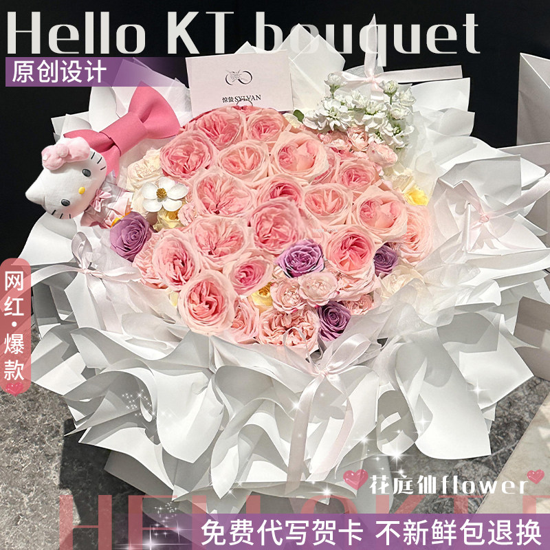 Hellokitty玫瑰花束鲜花同城速递上海成都上海全国配送女友生日店