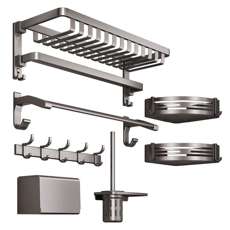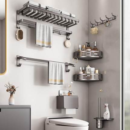 免打孔浴室置物架洗手间太空铝卫浴挂件套装枪灰卫生间收纳置物架