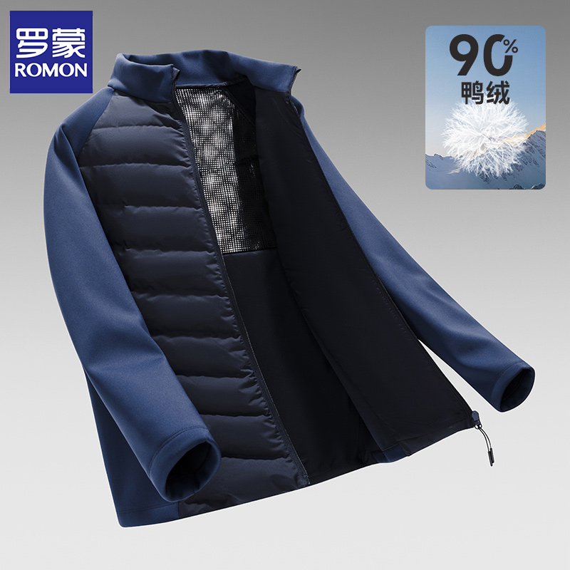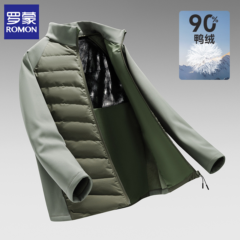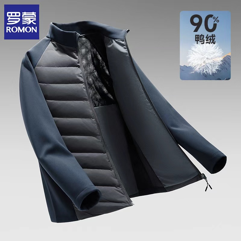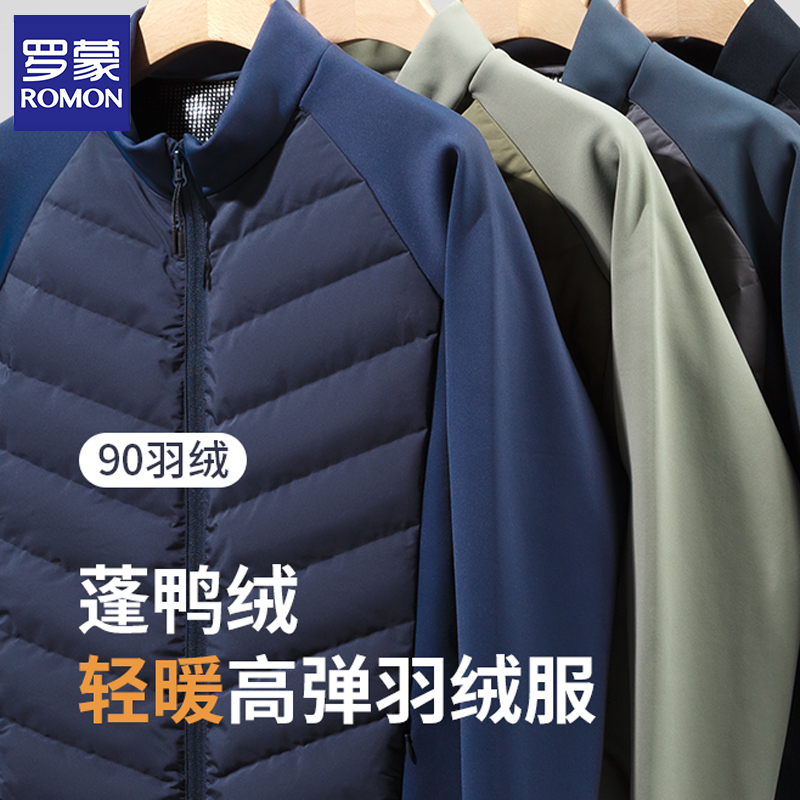 【90鸭绒】罗蒙运动羽绒服男款冬季轻薄立领防风户外拼接羽绒外套