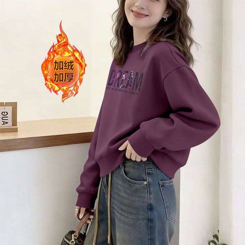 短款加绒加厚高腰短款套头卫衣女