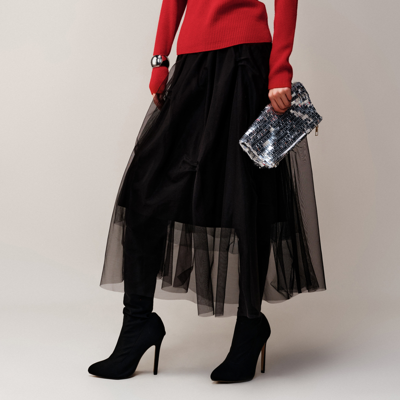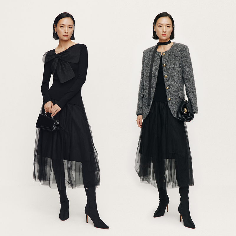 艾诺丝雅诗2024冬季新品网纱裙长裙半身裙31213599