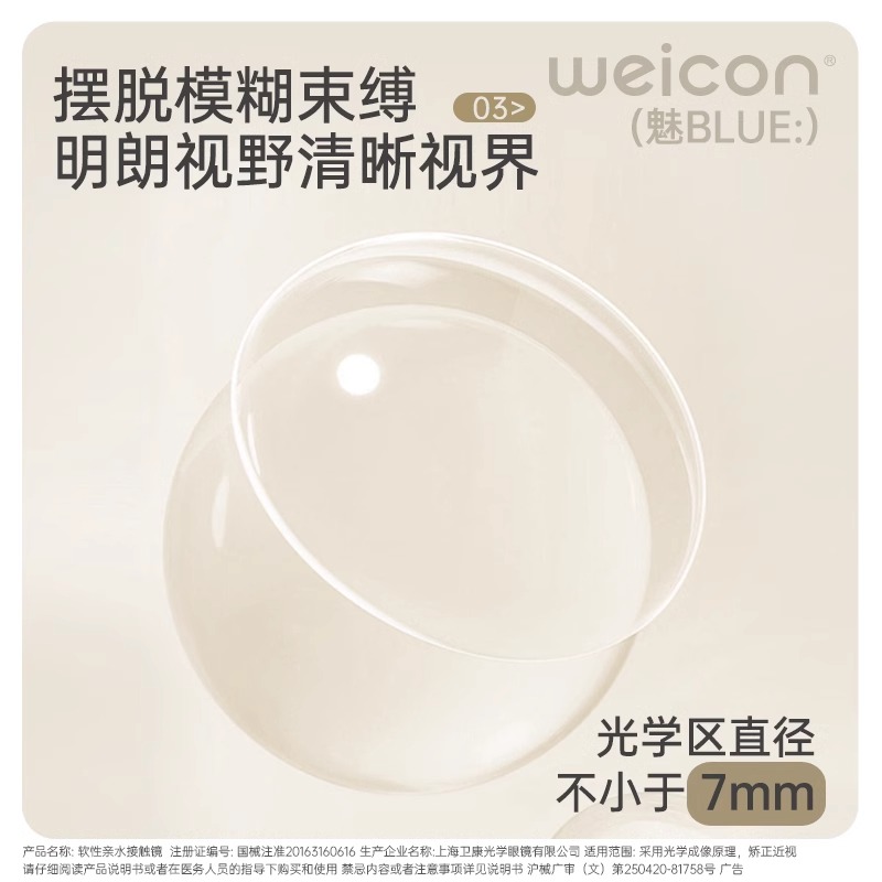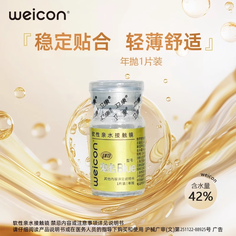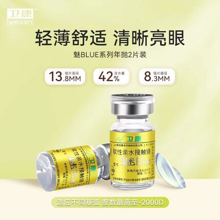 2片装卫康金装魅blue隐形近视眼镜年抛盒高度数薄旗舰店官网正品