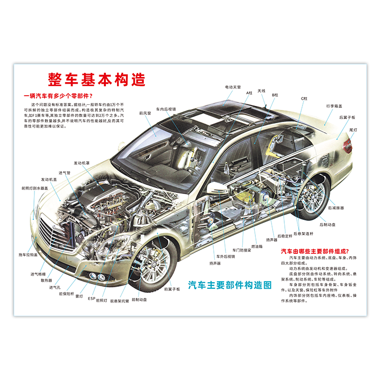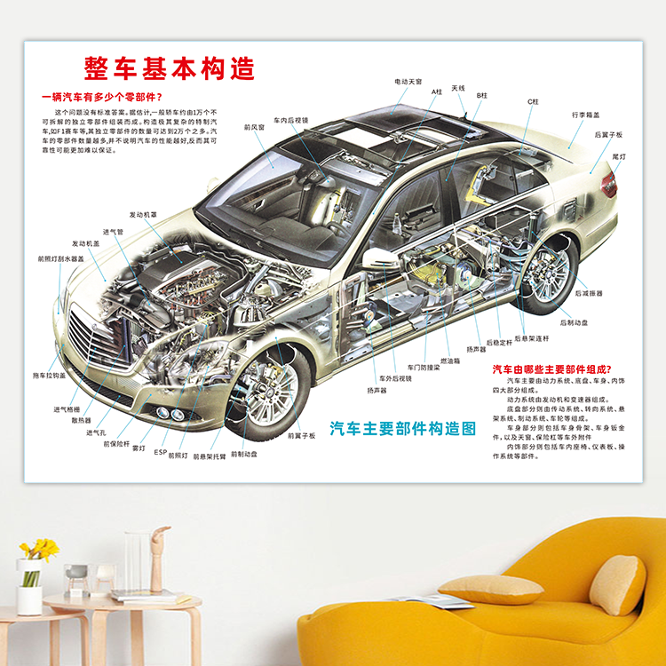 车辆整车主要部件构造知识学习宣传广告防水防晒海报装饰背胶画布