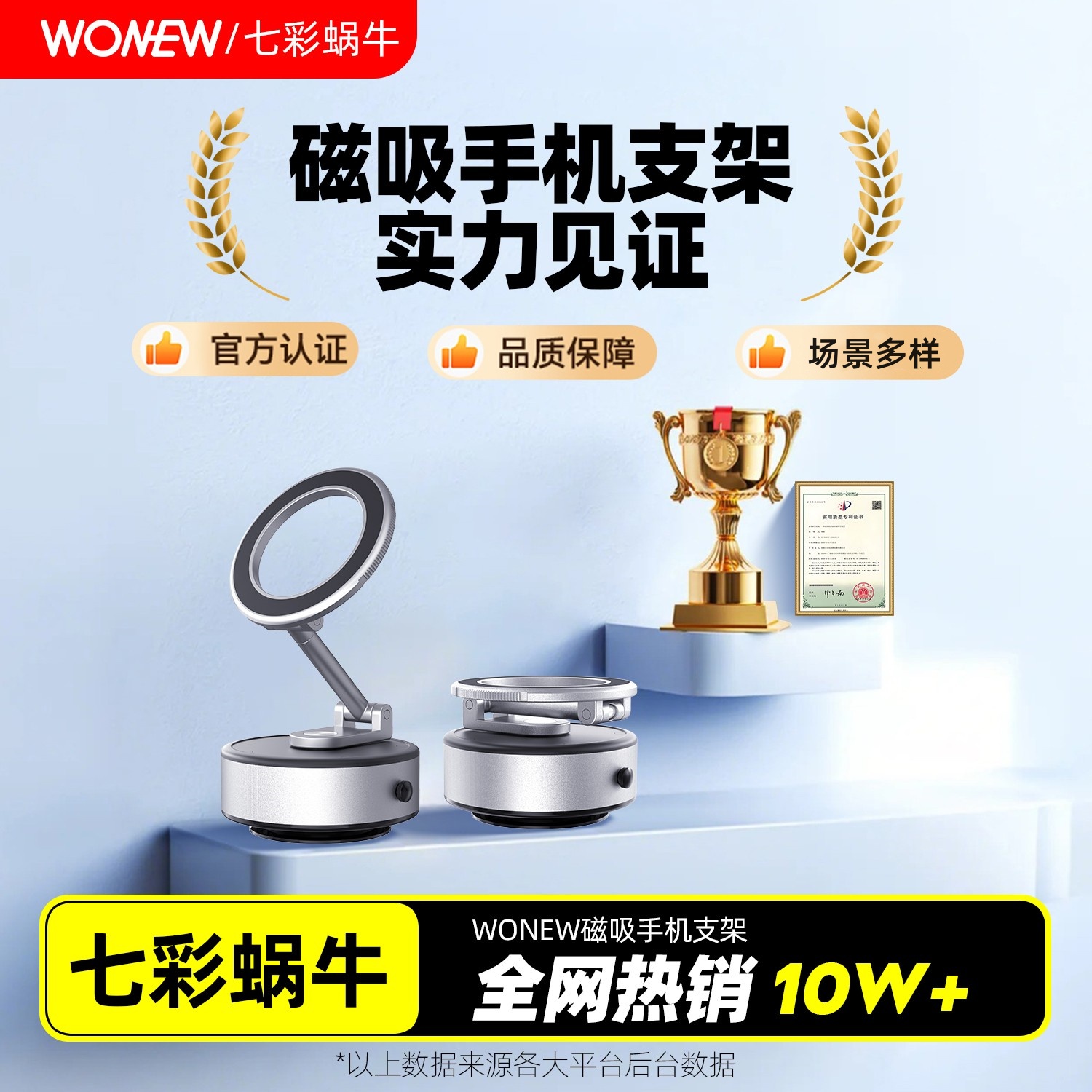 wonew七彩蜗牛车载电动自拍真空磁吸手机支架吸盘吸附导航专用拍照神器桌面吸力手机拍摄迷你便携旅游vlog