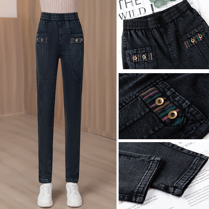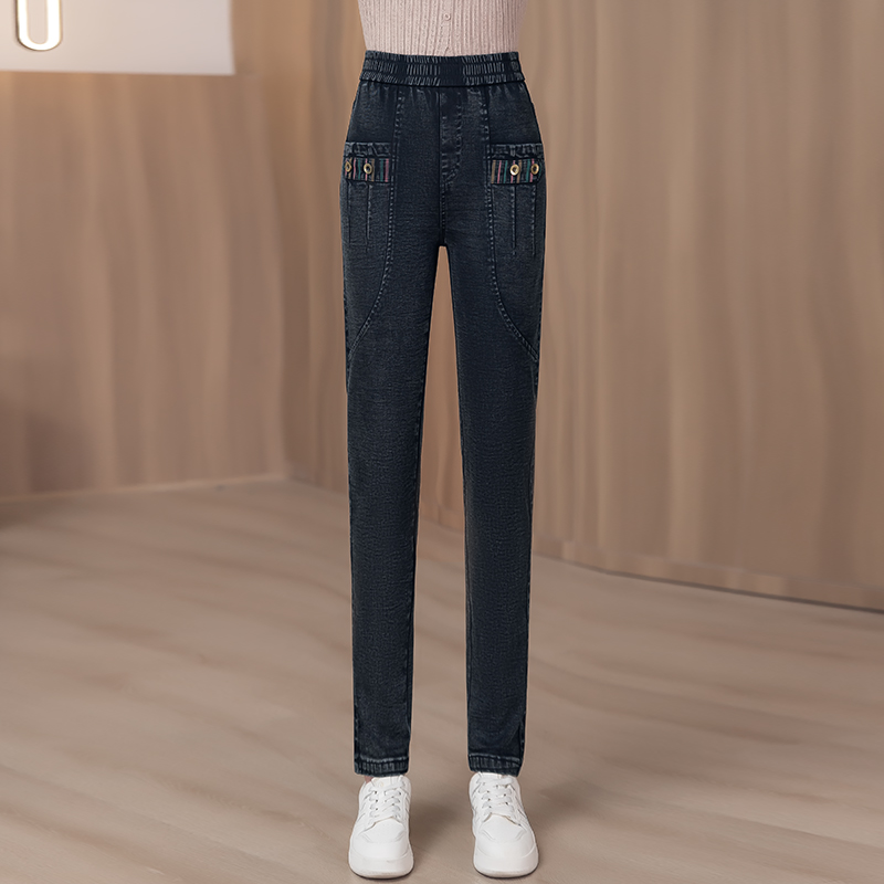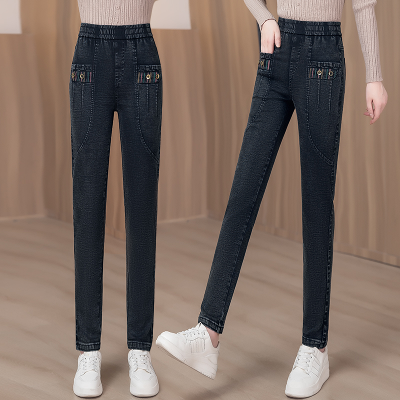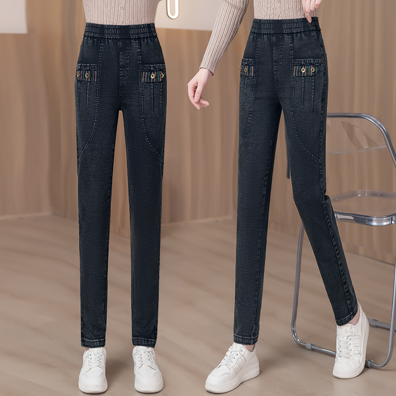 牛仔裤女2025新款春秋冬女裤松紧高腰显瘦休闲裤加绒哈伦小脚裤女