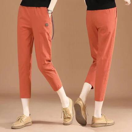 棉麻裤子女夏季薄款2025新款上档次纯亚麻宽松女士七分休闲哈伦裤