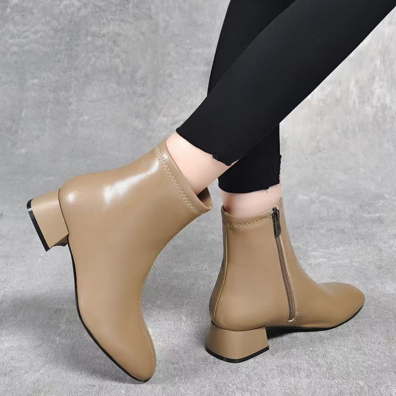 羊皮小短靴女软皮粗跟2025新款真皮美拉德瘦瘦靴百搭裸靴春秋单靴