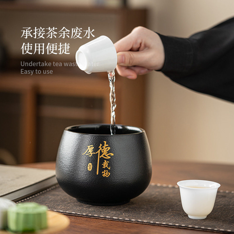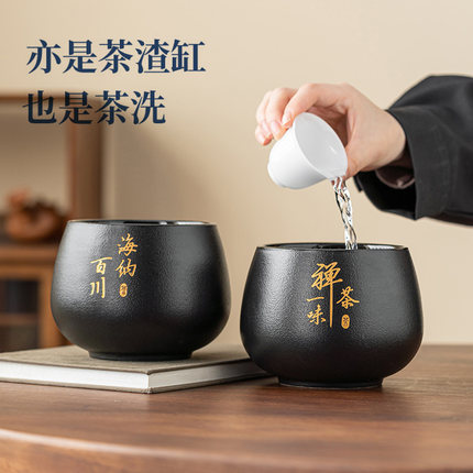 茶渣缸大容量黑陶茶洗废水缸水洗水盅水盂盆茶钵建水茶具茶道配件