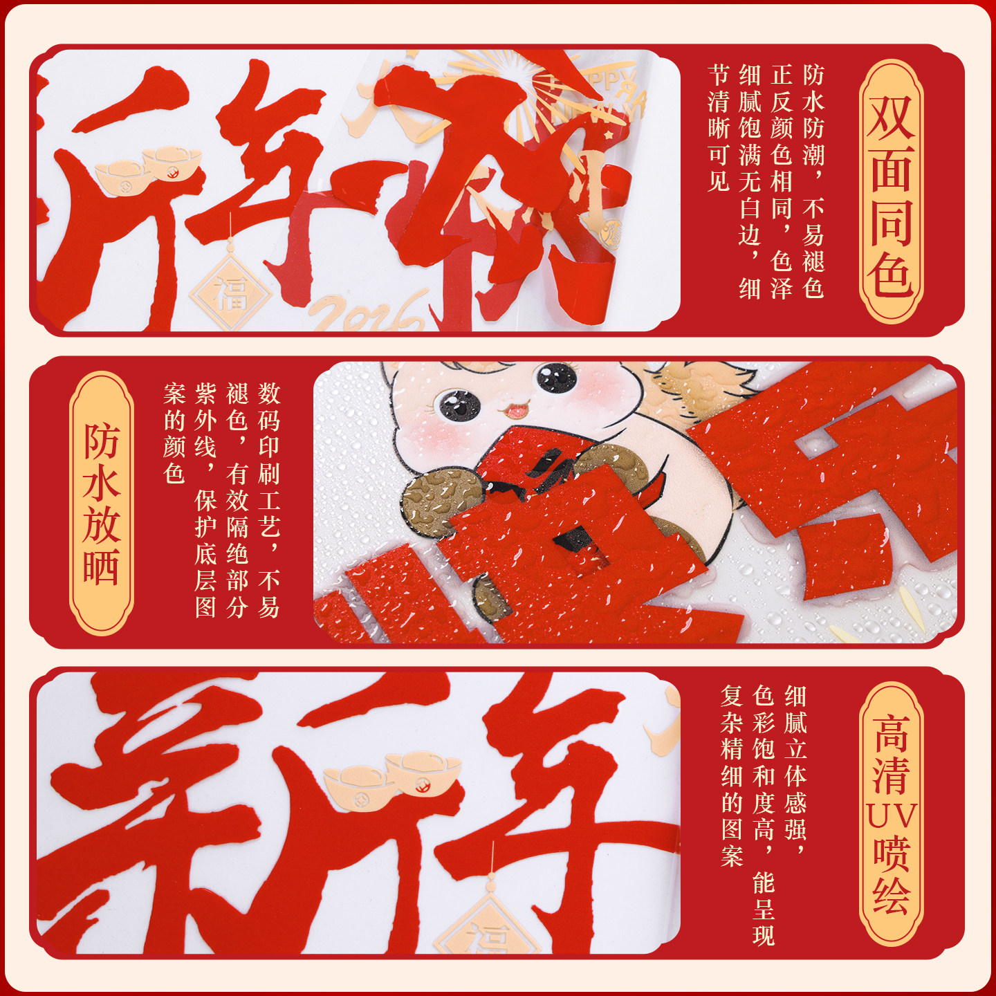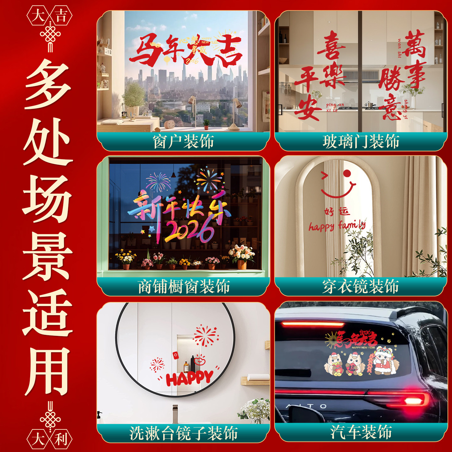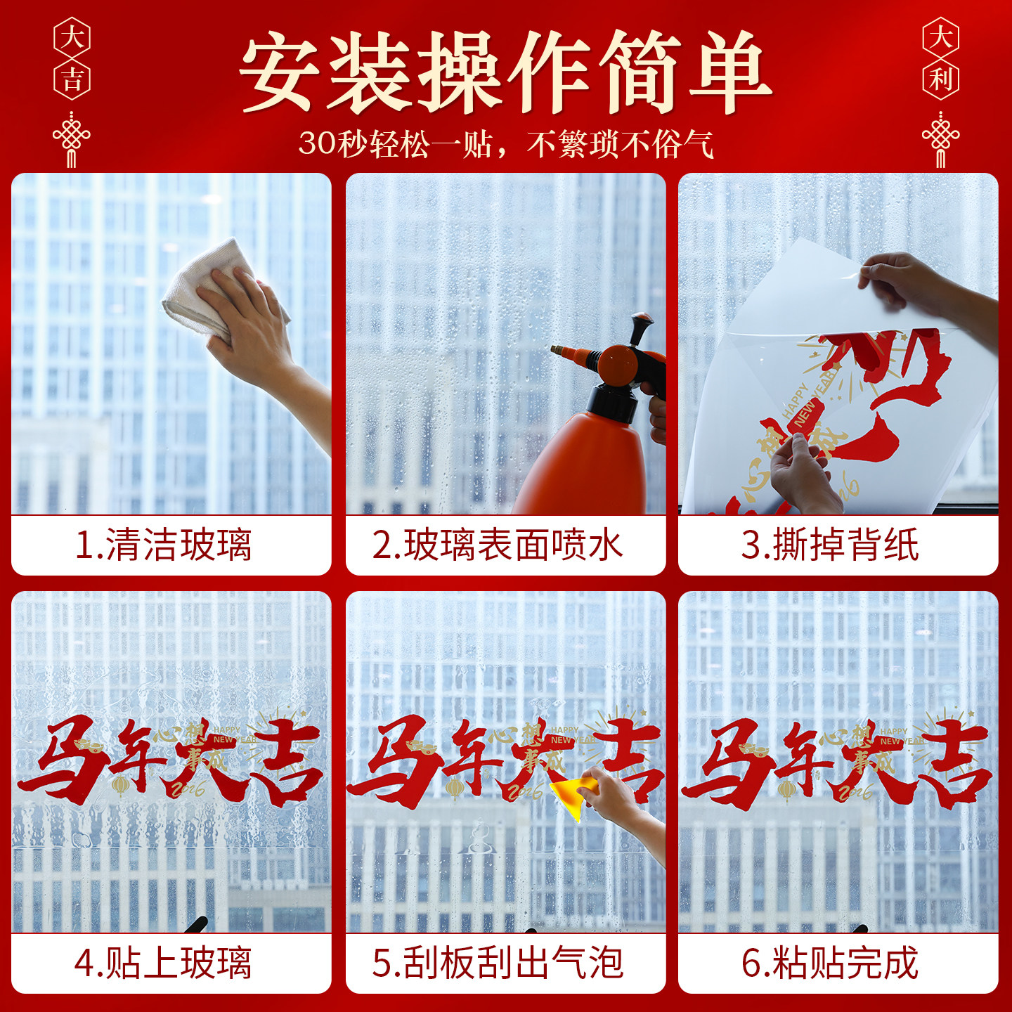 新年贴纸2026新款窗花纸玻璃贴马年快乐过年装饰春节窗户纸静电贴