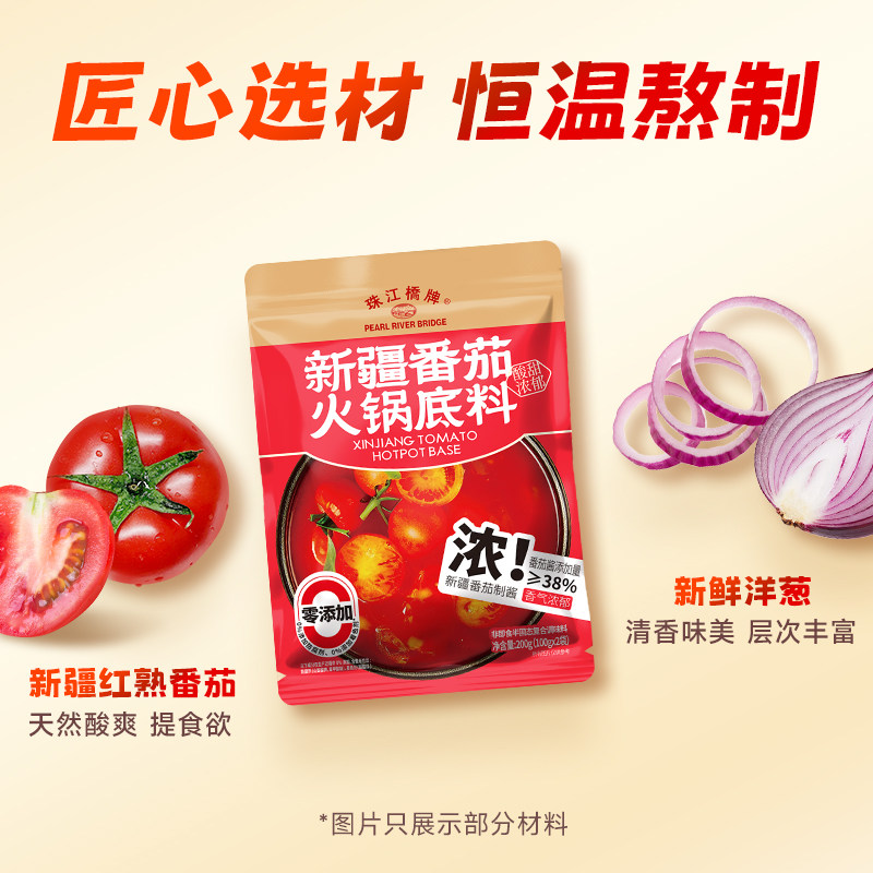 珠江桥牌新疆番茄火锅底料200g不辣小包装一人份番茄牛腩汤料包