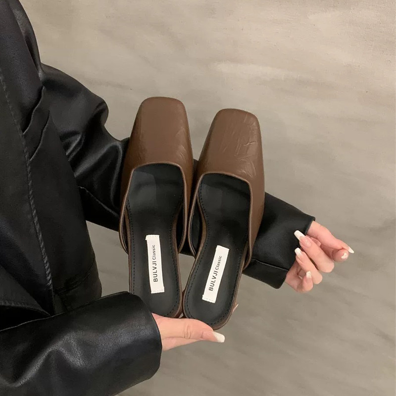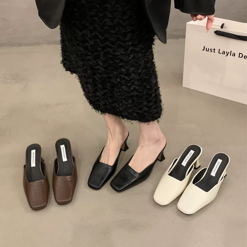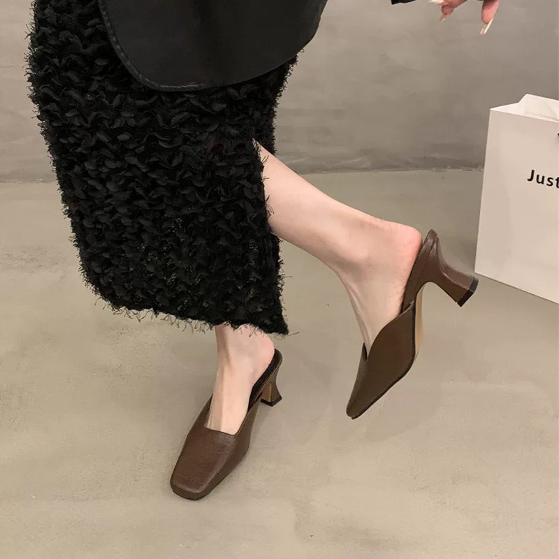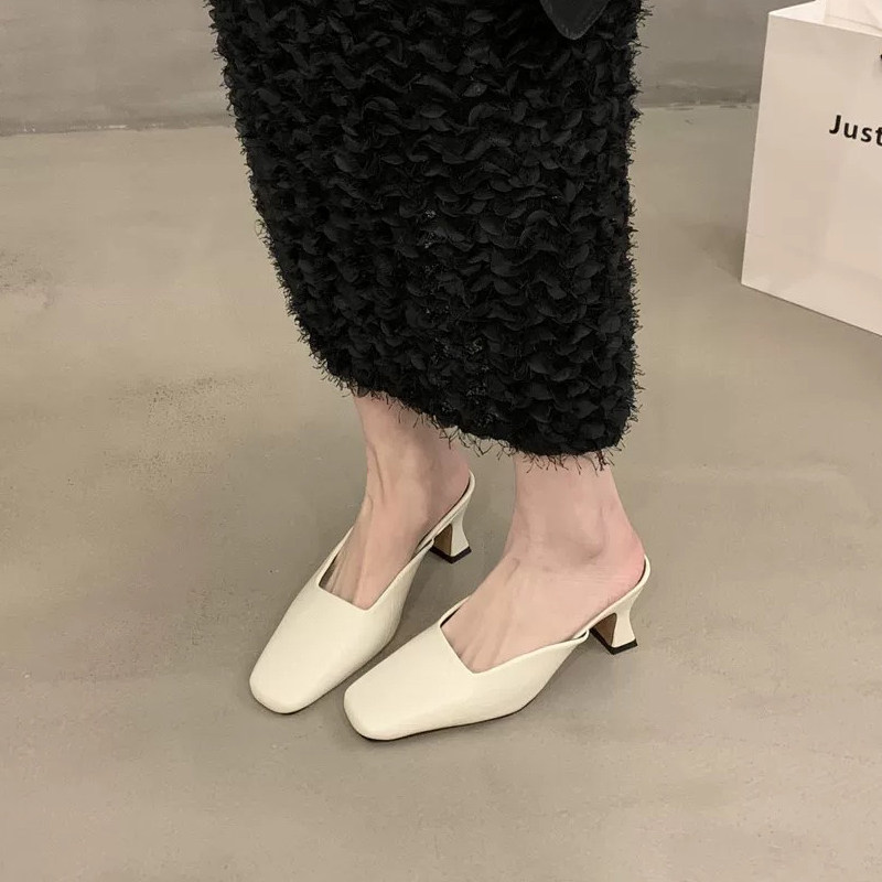 法式高跟包头半拖鞋女外穿25夏季新款气质粗跟不累脚浅口凉鞋单鞋
