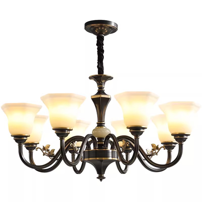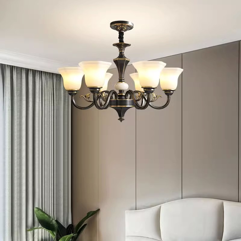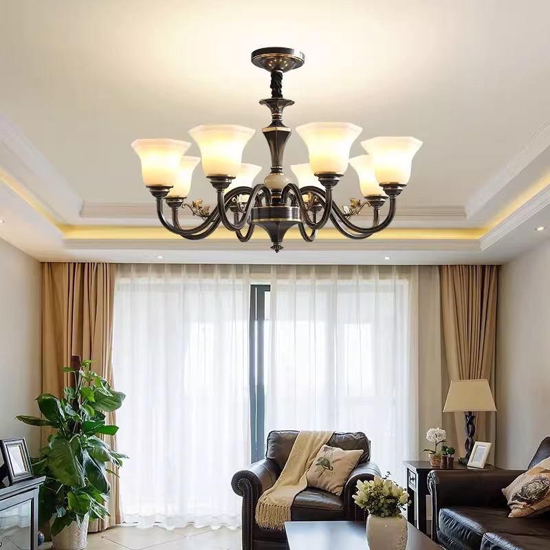 美式客厅吊灯全铜复古餐厅新款灯饰简约大气玉石铜灯家用卧室灯具