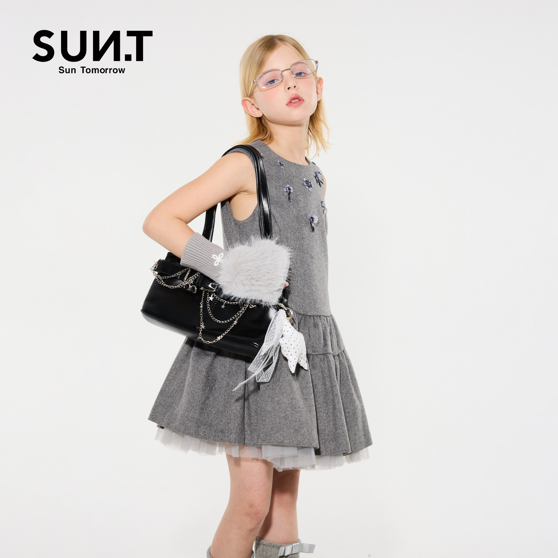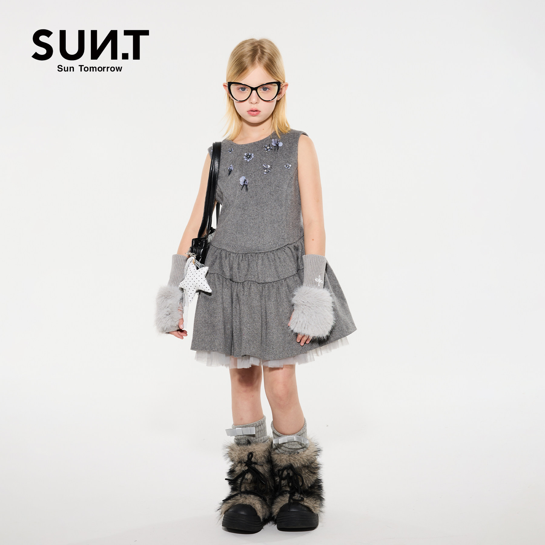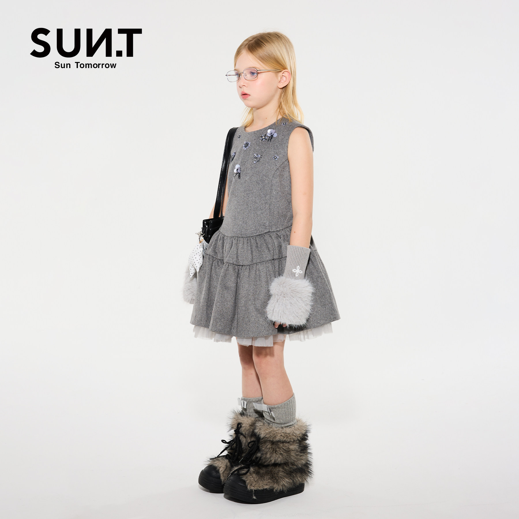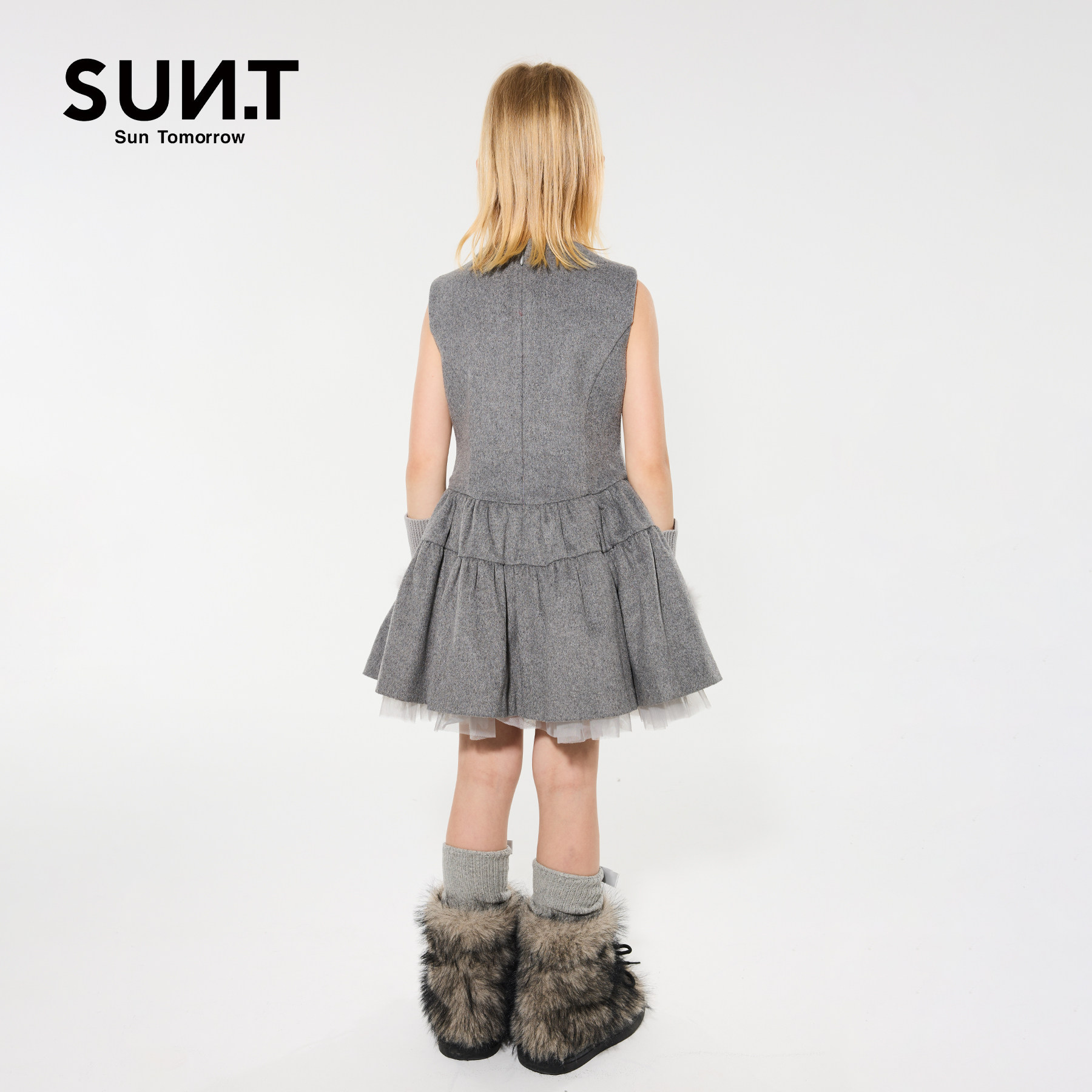 suntomorrow儿童连衣裙无袖2025秋冬新款中大童休闲羊毛呢背心裙