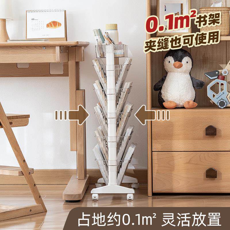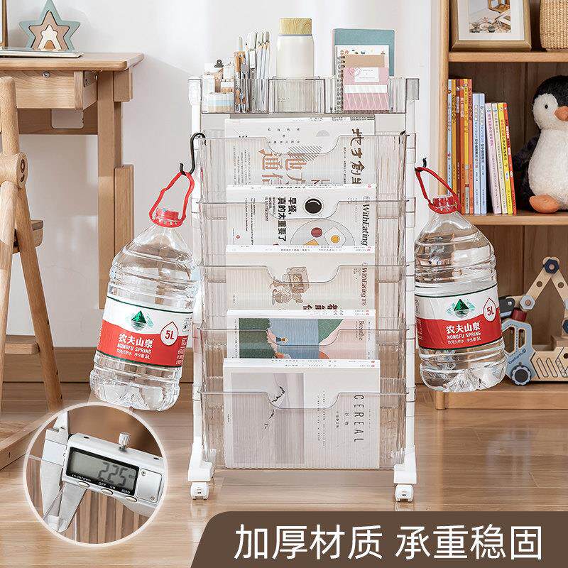 时代良品可移动书架落地置物架带轮收纳书柜小推车多层儿童书房