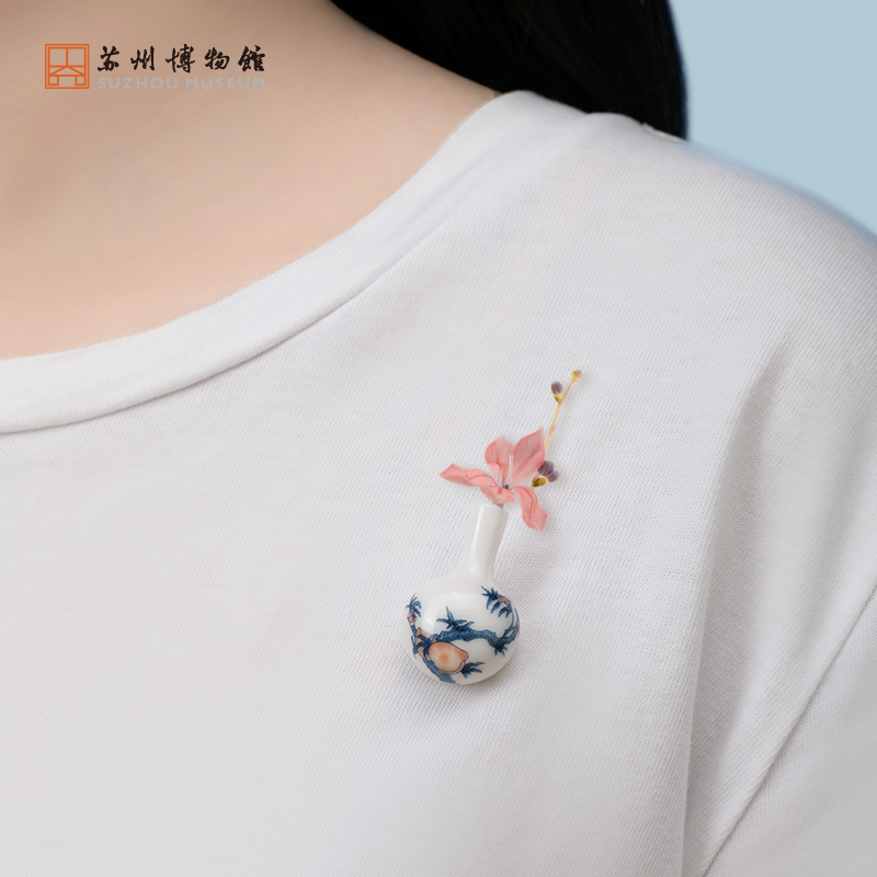 苏州博物馆 陶瓷花瓶胸针配饰原创国风陶瓷冰箱贴小花器创意礼物