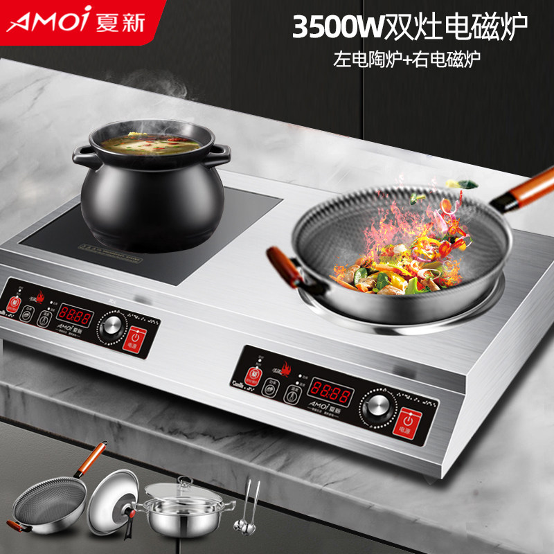 夏新不锈钢双灶电磁炉商用大功率3500w平凹电陶炉5000w家用双头灶