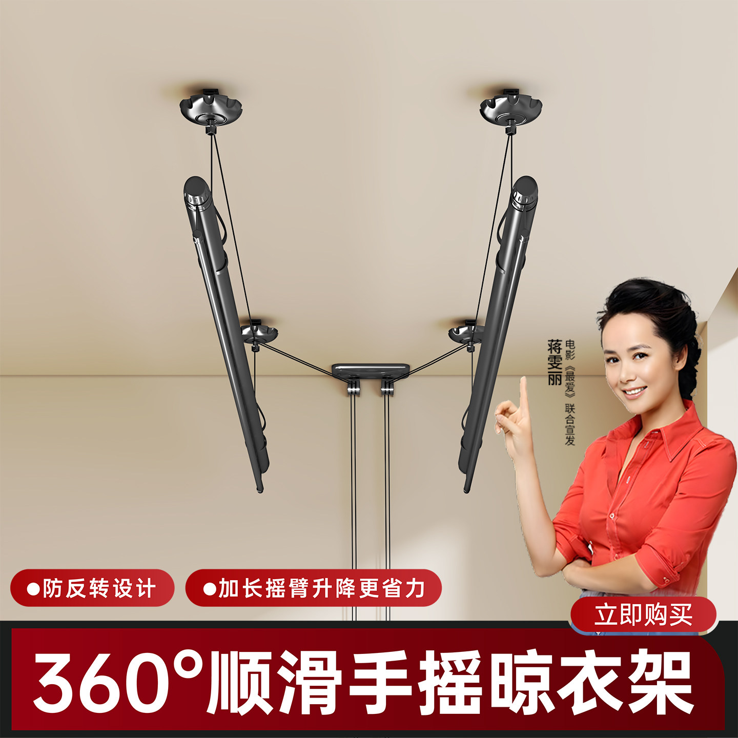 欧派普惠升降晾衣架家用阳台双杆手摇晒衣架加厚手动吊顶晾晒神器