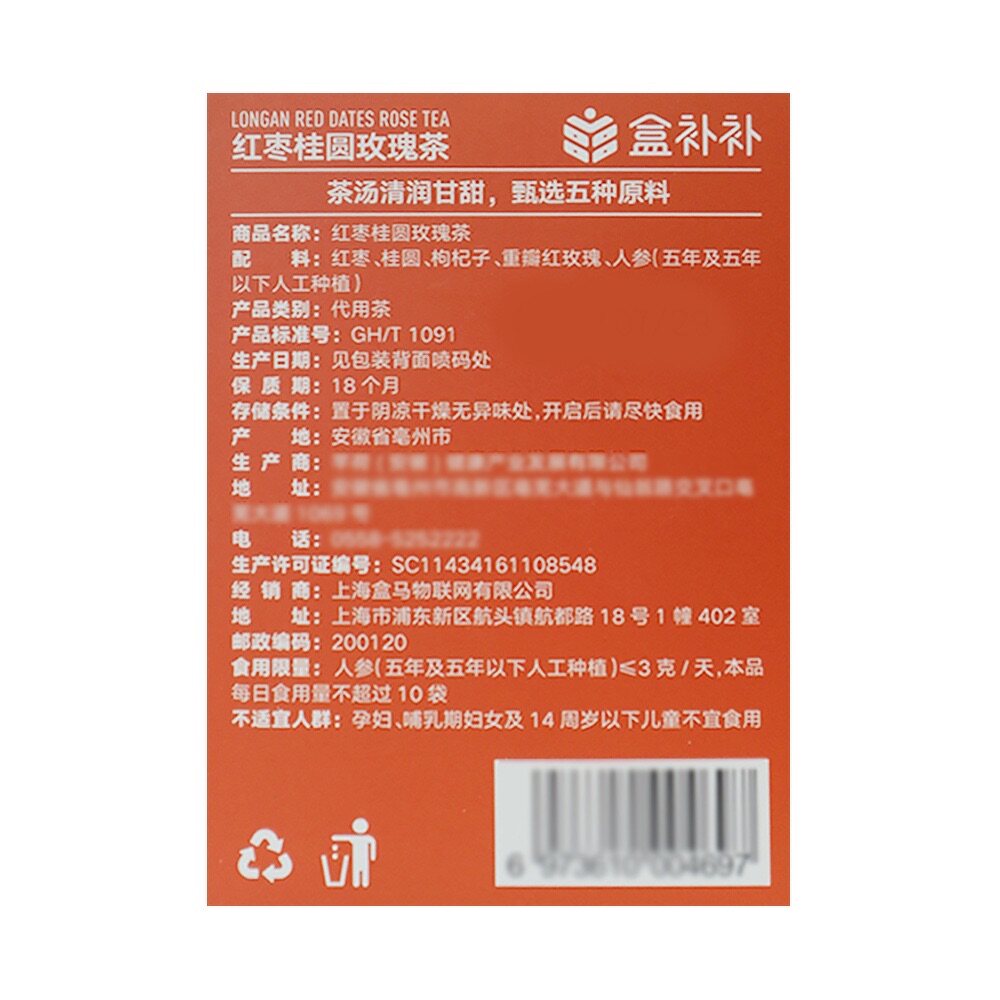 盒马盒补补红枣桂圆玫瑰茶12g*10包枸杞子重瓣红玫瑰人参独立包装