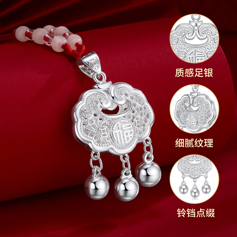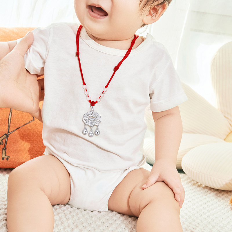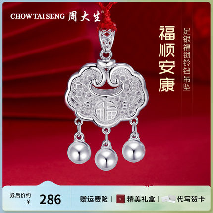 周大生长命锁足银儿童福字铃铛吊坠福锁小宝宝满月周岁新生儿礼物