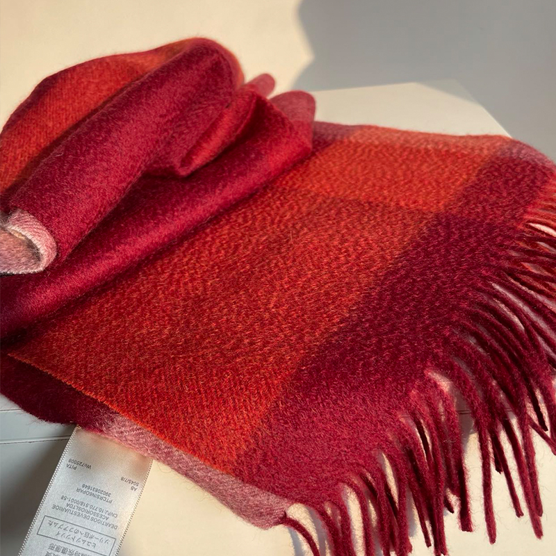 车厘子红cashmere纯山羊绒格子围巾女冬季高端礼盒装保暖围脖礼物