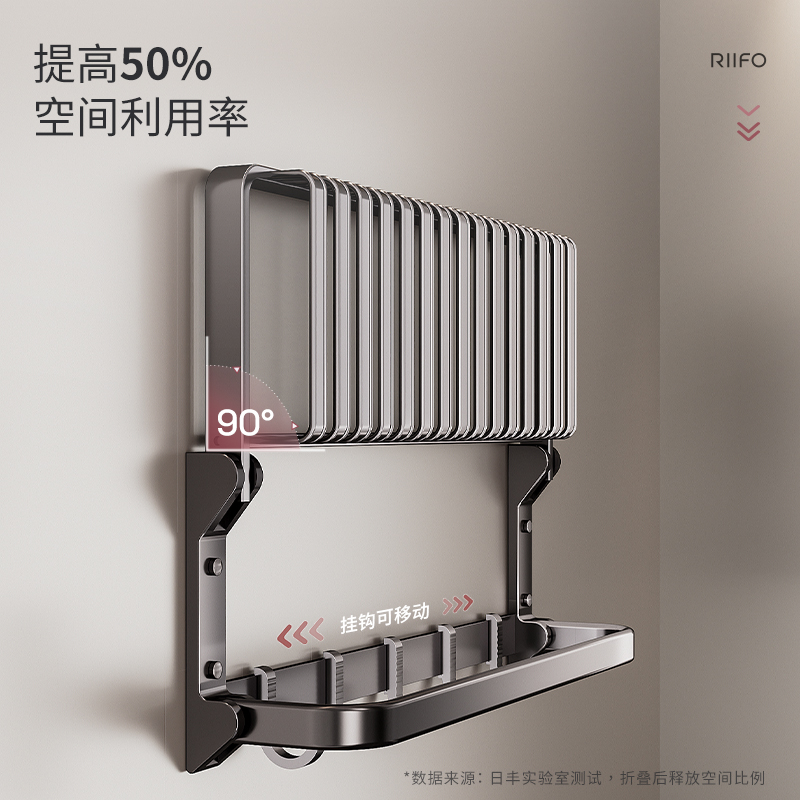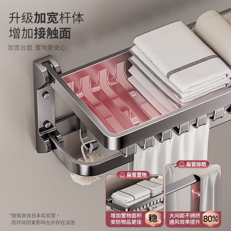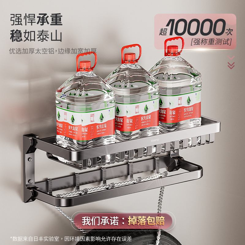日丰卫生间枪灰毛巾架免打孔浴室五金挂件套装太空铝浴巾架置物架