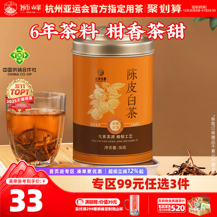 狮峰牌陈皮白茶高山原产2019寿眉老白茶叶福鼎散装官方旗舰店50g