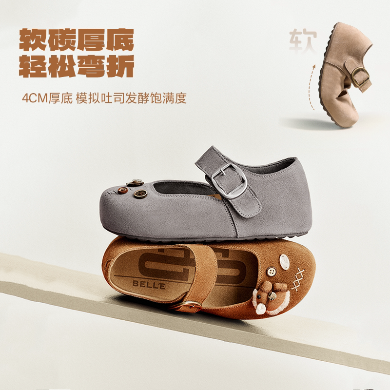 百丽女鞋厚糖吐司鞋复古厚底增高勃肯鞋