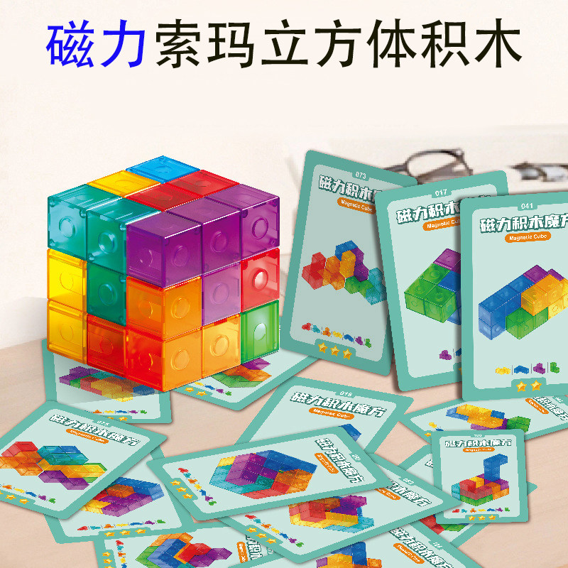 磁力索玛立方体积木七巧板鲁班魔方6岁小学生儿童磁性方块拼装