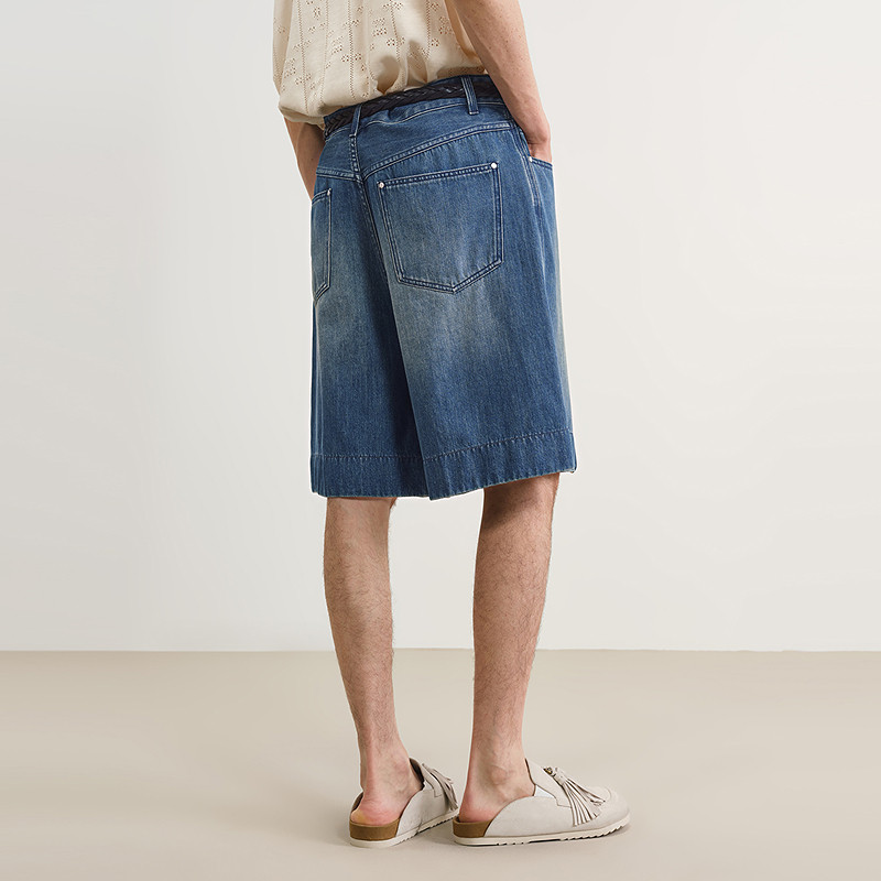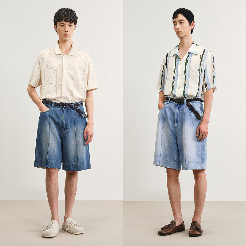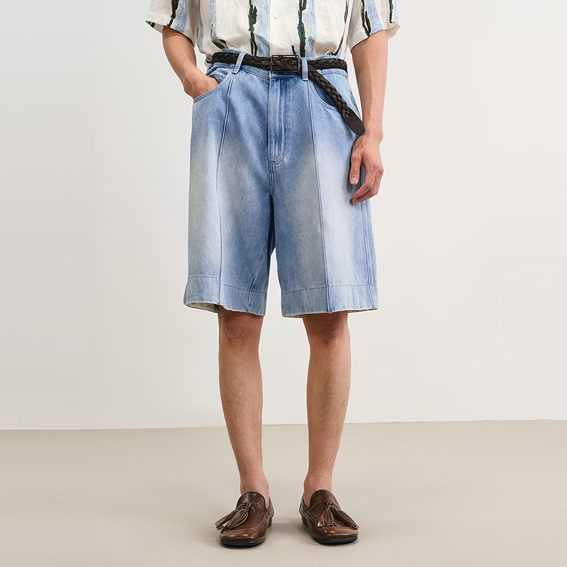 速写男装2025夏宽松牛仔中短裤