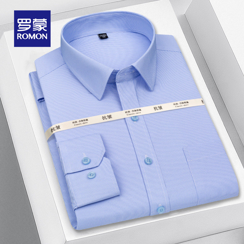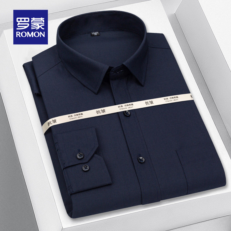 罗蒙上班长袖衬衫男2025秋冬商务工装上衣大码职业休闲免烫衬衣潮