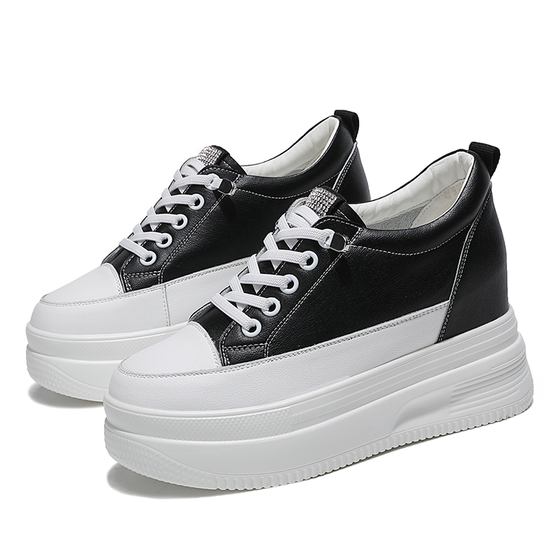 内增高女鞋显脚小爆款百搭真皮松糕鞋小个子10CM增高厚底小白鞋女