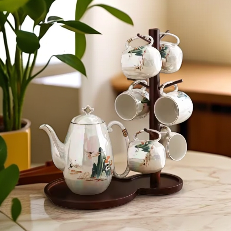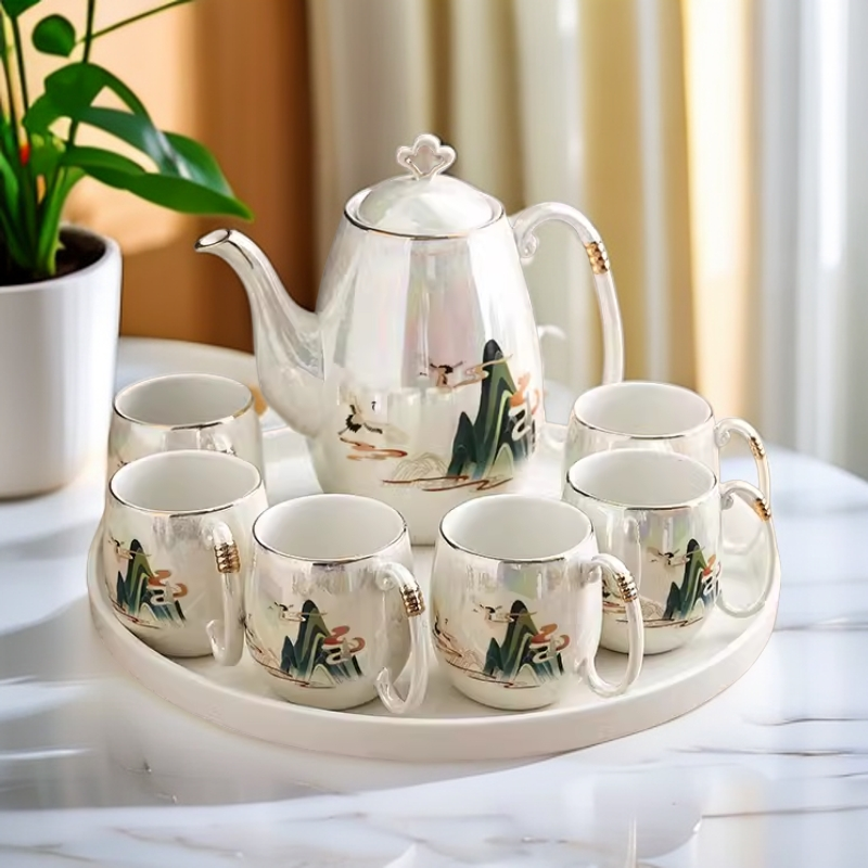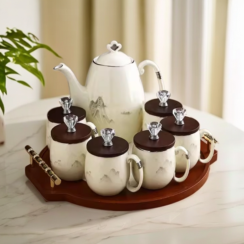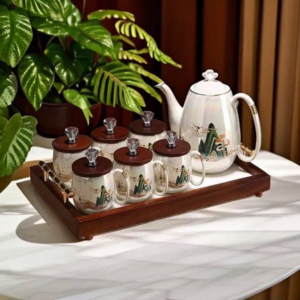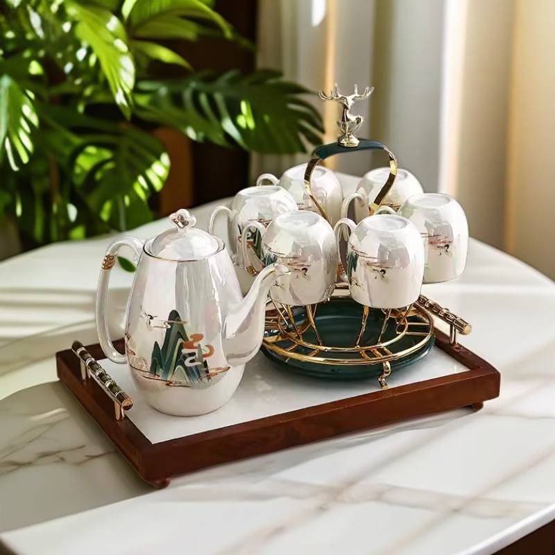 新中式轻奢 乔迁茶杯结婚茶具水具套装 水壶水杯家用客厅陶瓷杯具