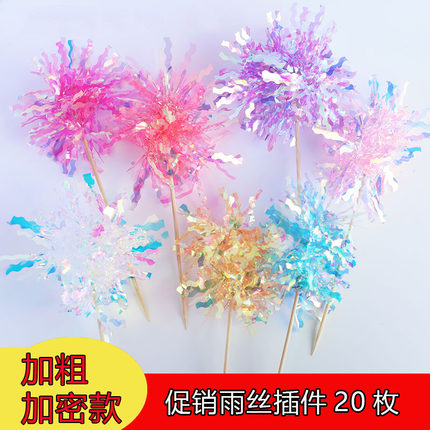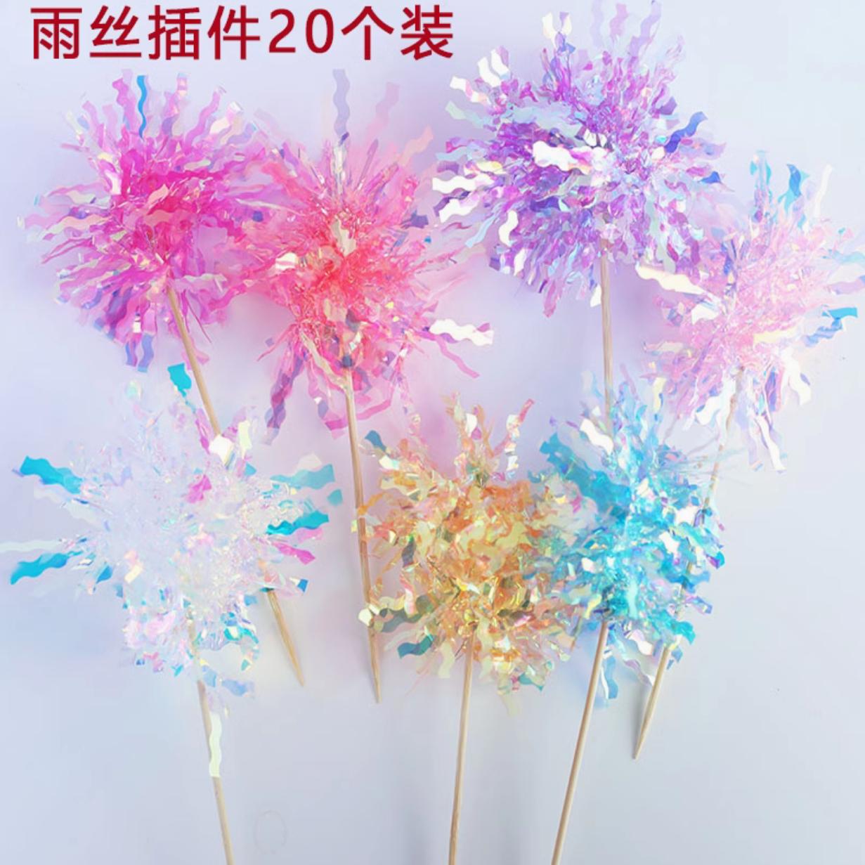 加密款创意炫彩雨丝蛋糕插件围边ins风蛋糕装饰生日装扮烘焙插件