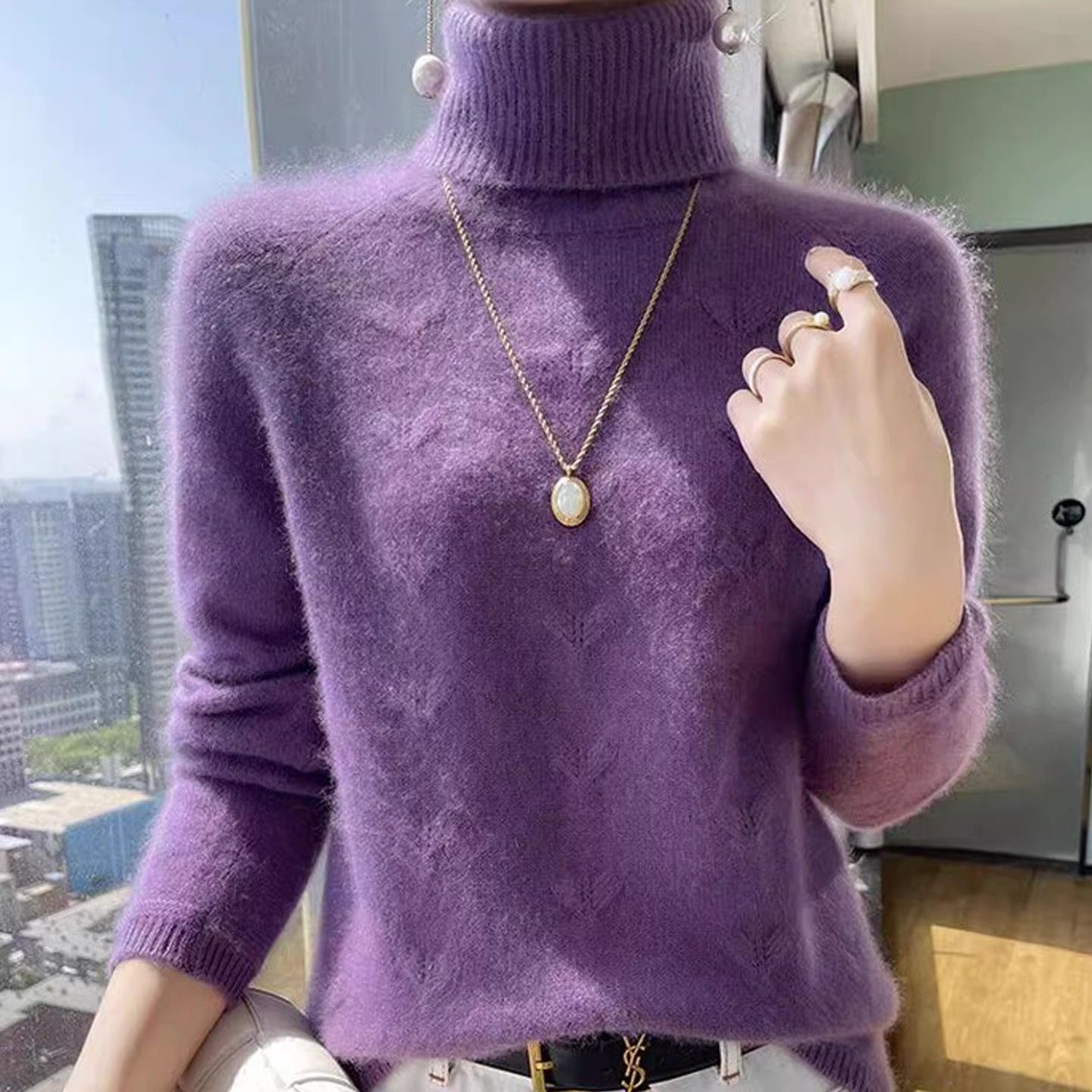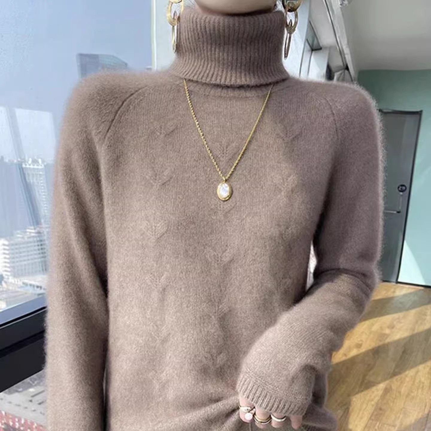 鄂尔多斯市秋冬高领羊绒衫女毛衣宽松通勤风两翻领打底衫针织上衣