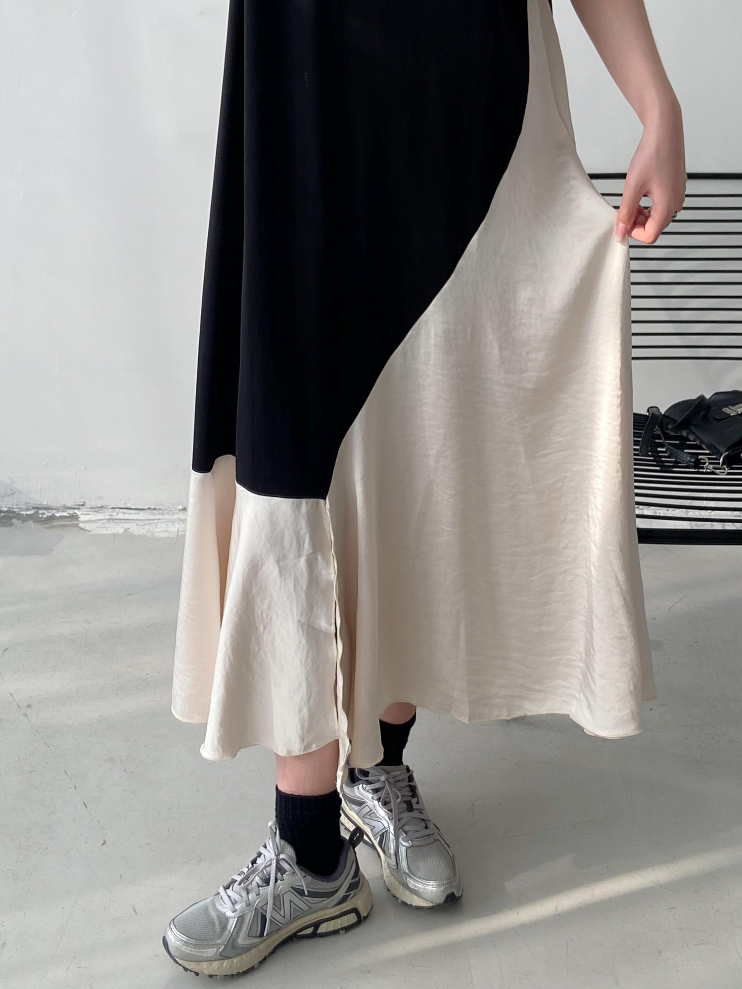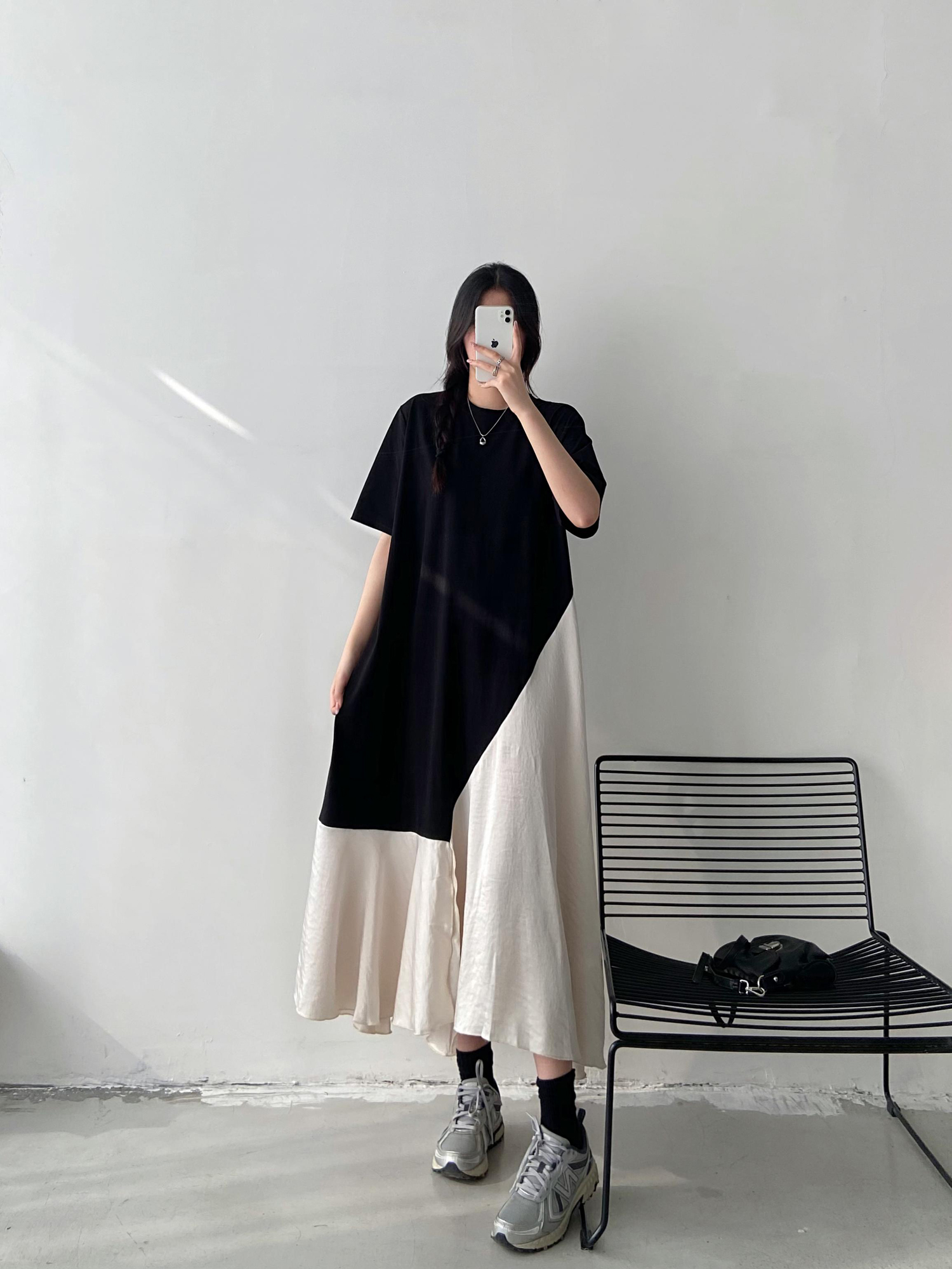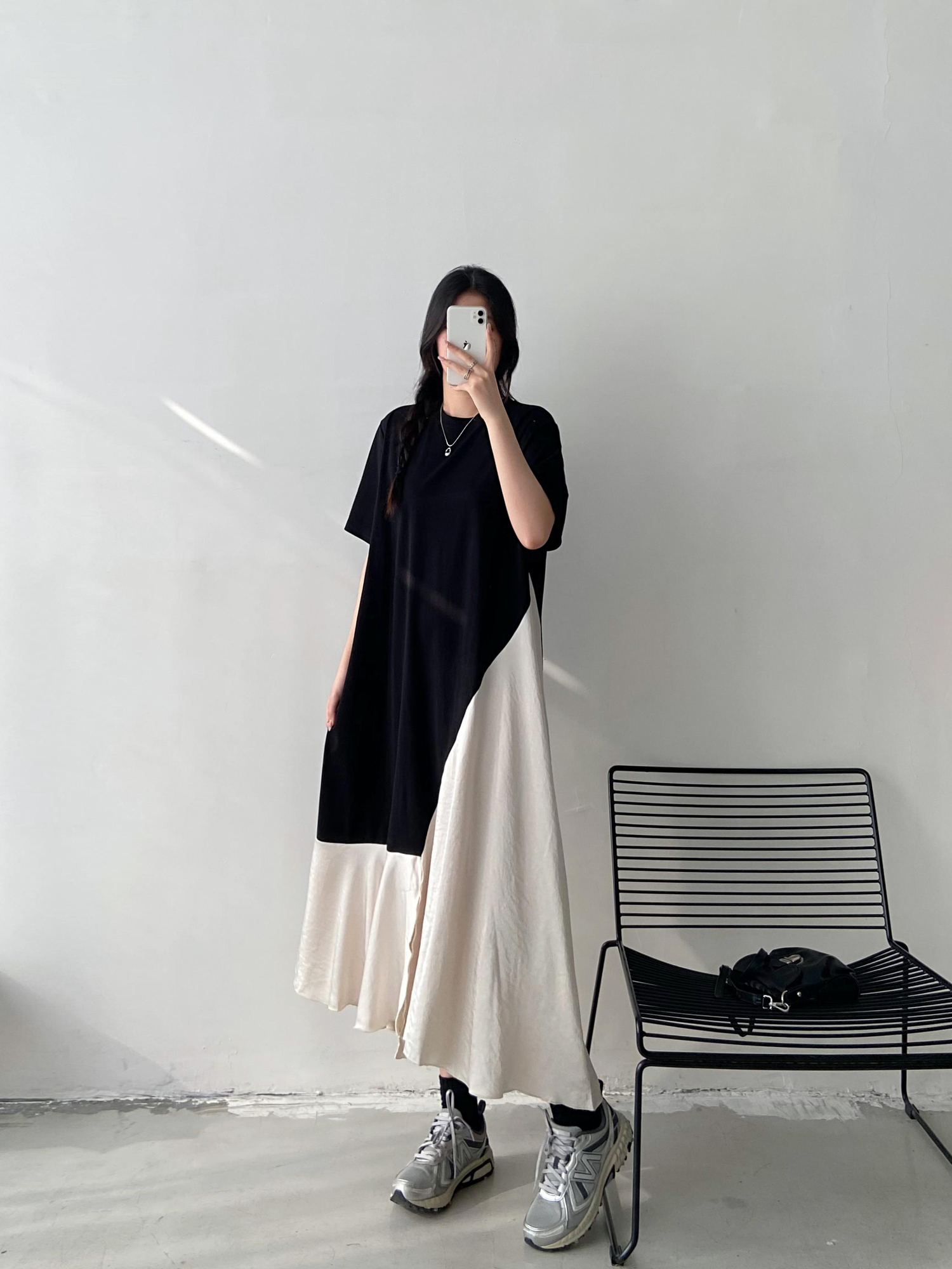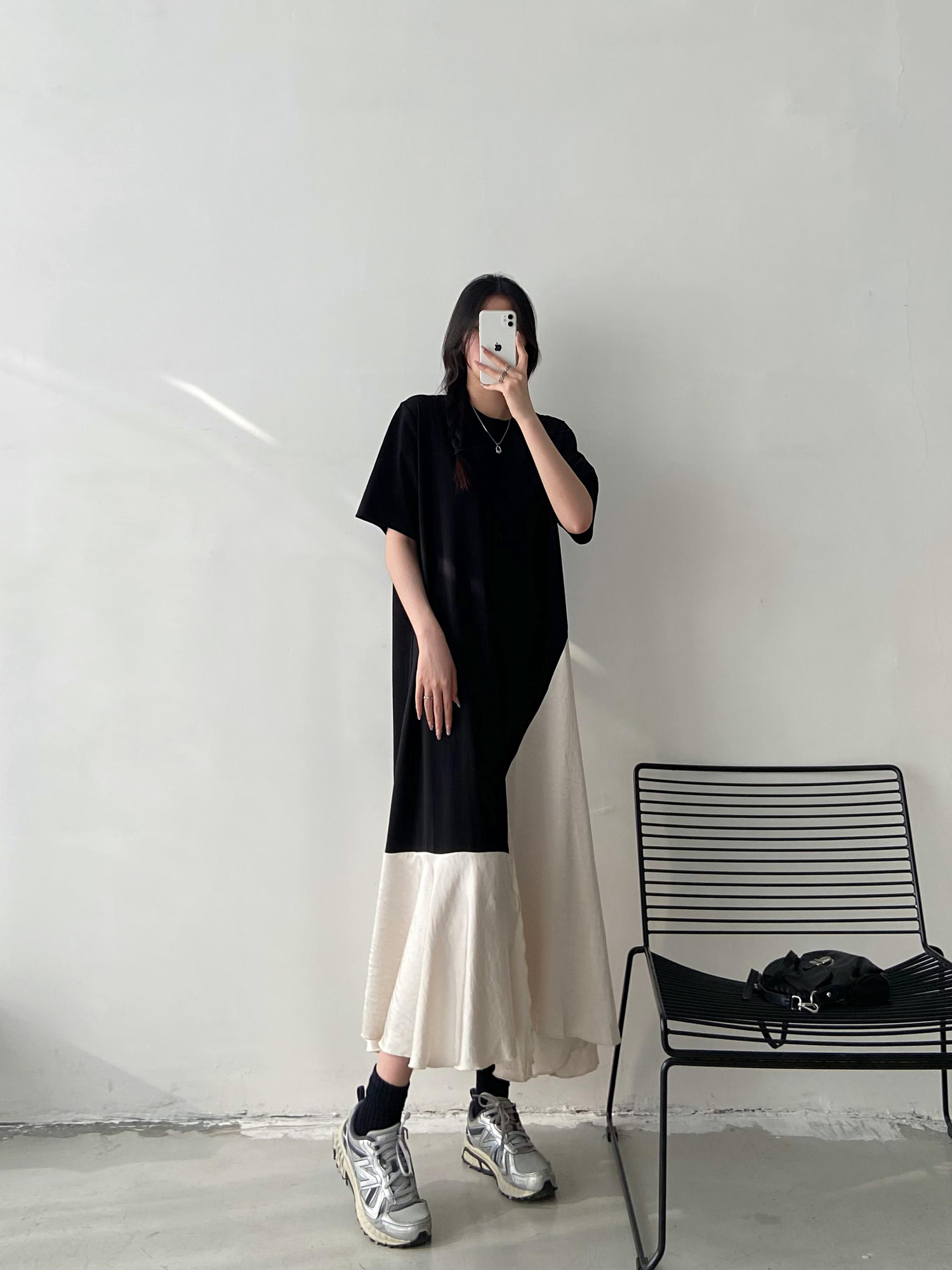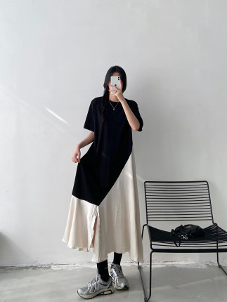 小众设计假两件T恤长裙2025夏新款大码宽松拼接气质短袖连衣裙女