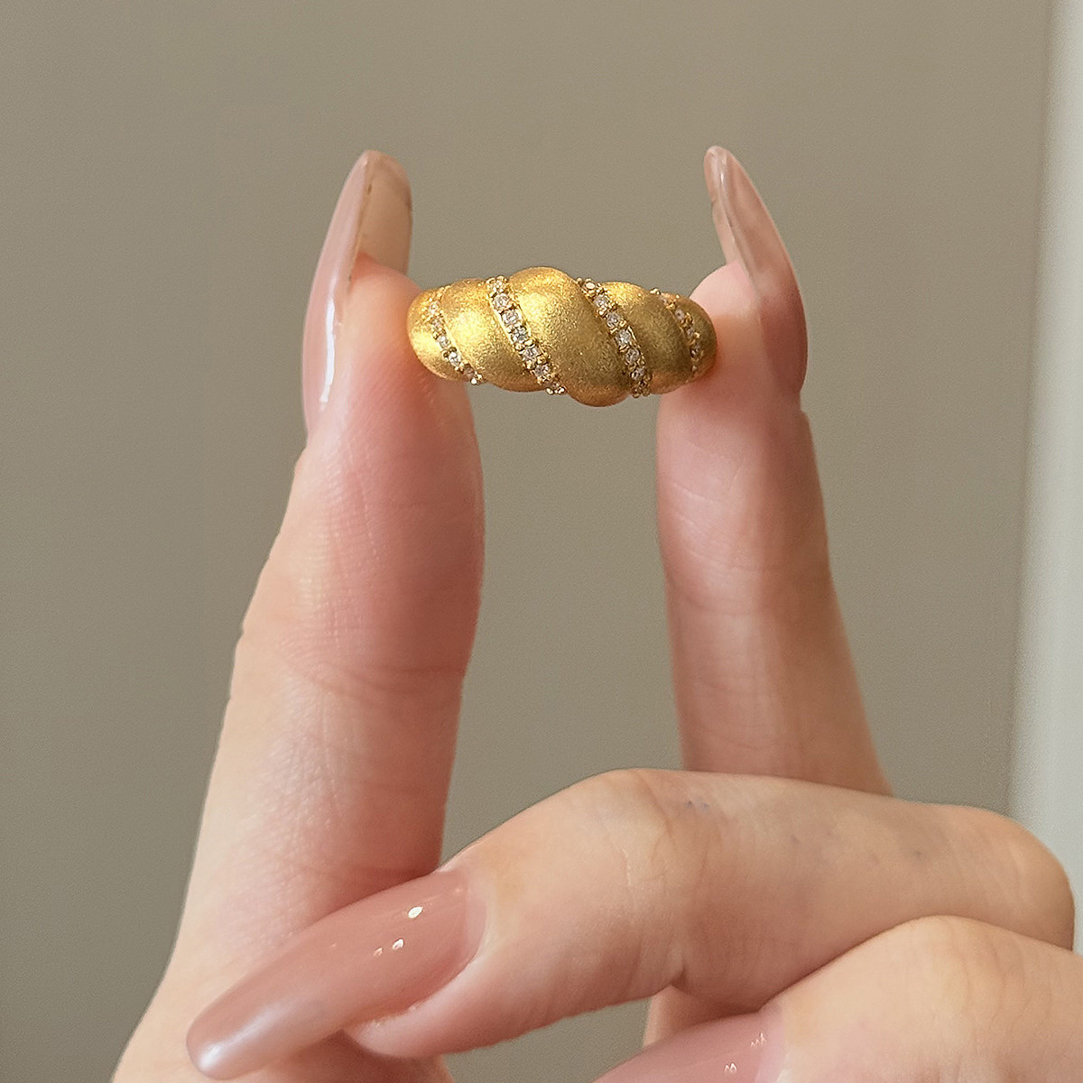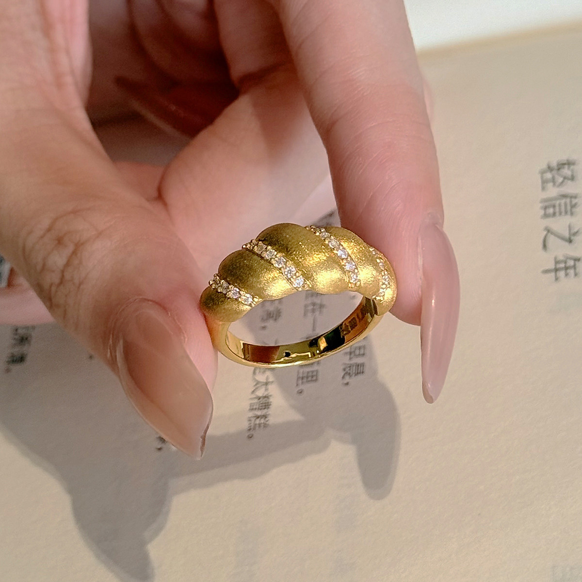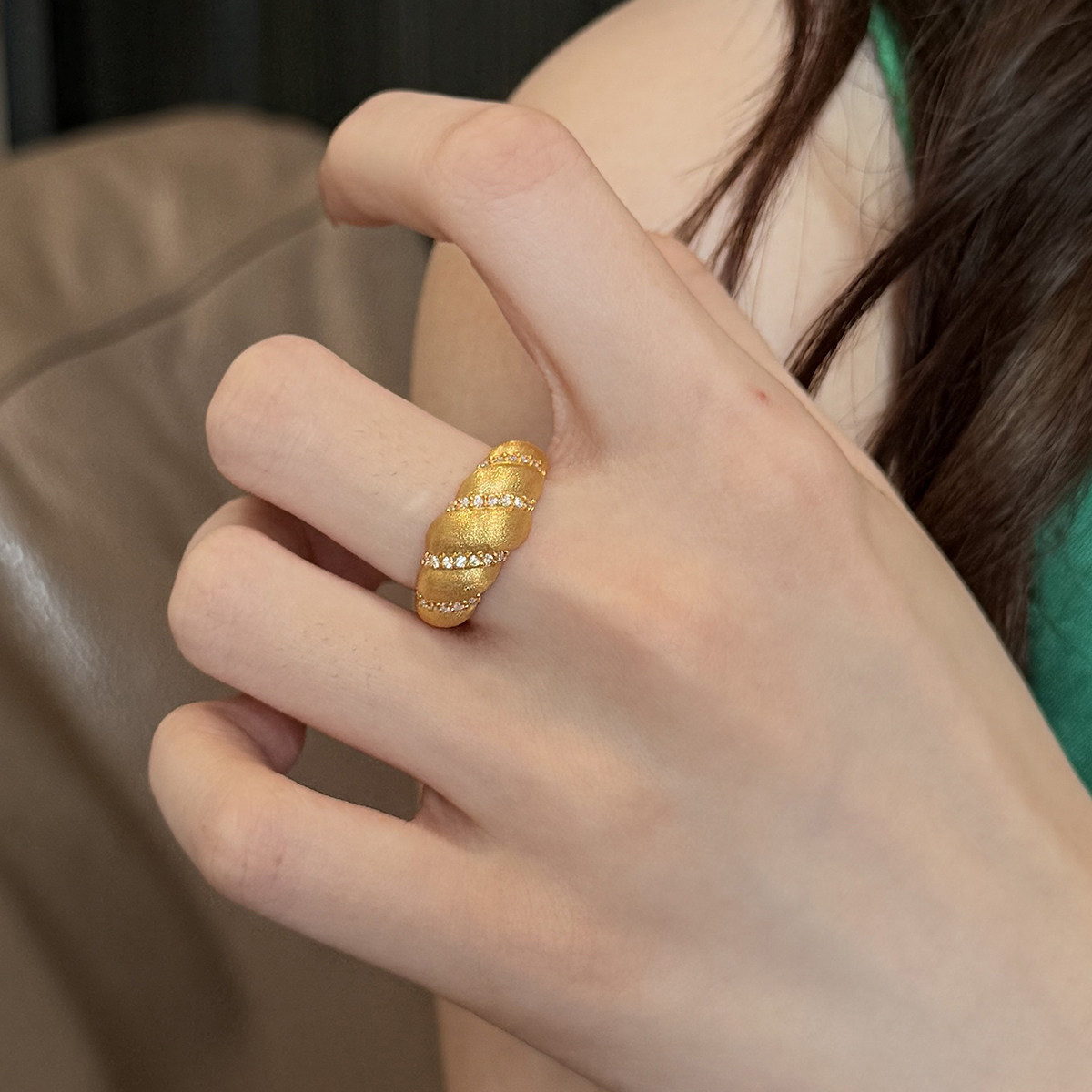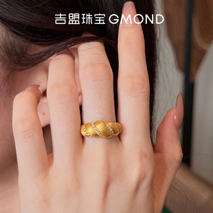 吉盟珠宝5D点钻黄金戒指999足金面包指环个性时尚设计感送女友