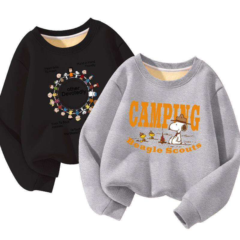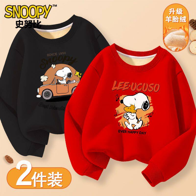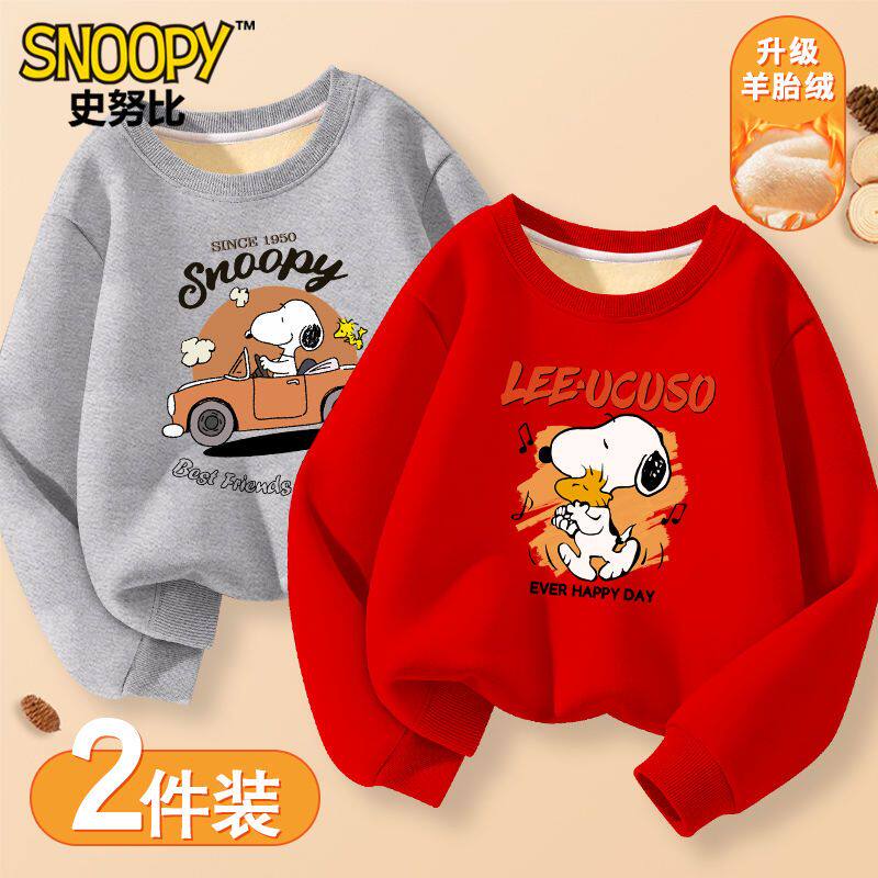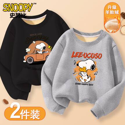 史努比冬装2026新款男孩加绒卫衣秋冬一体绒冬季加厚上衣保暖男童