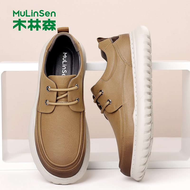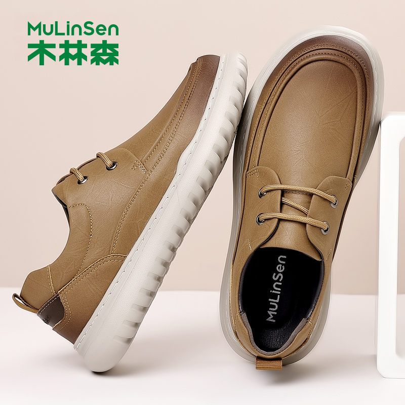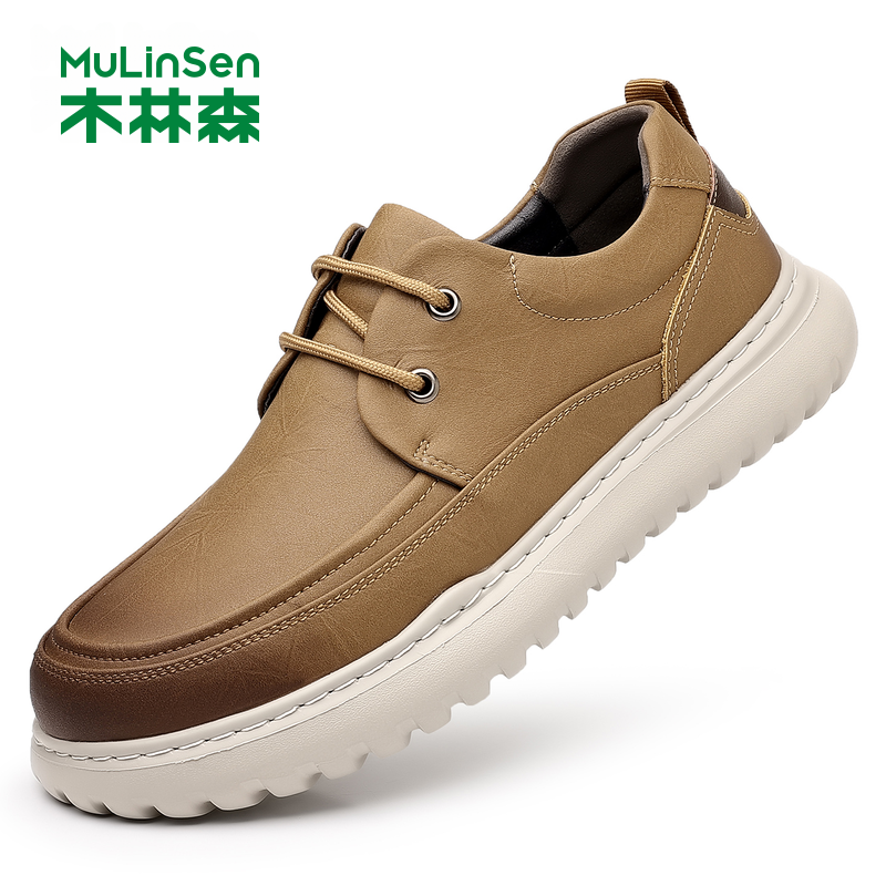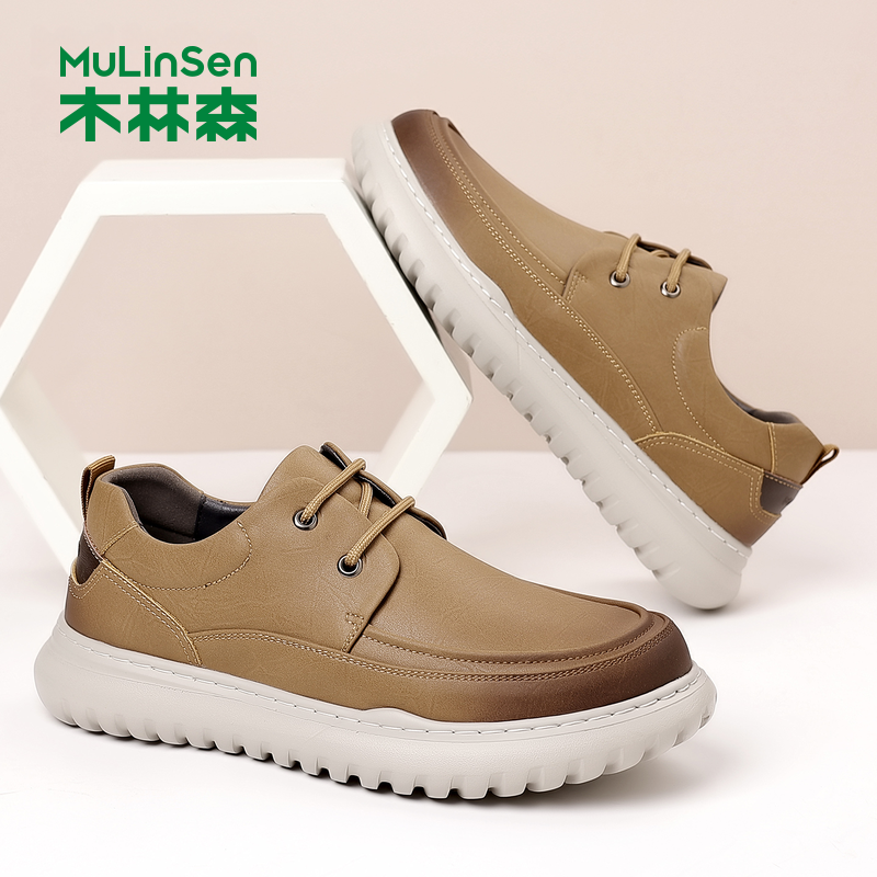 木林森男士真皮休闲皮鞋轻便系带百搭轻质软底爸爸鞋日常休闲男鞋