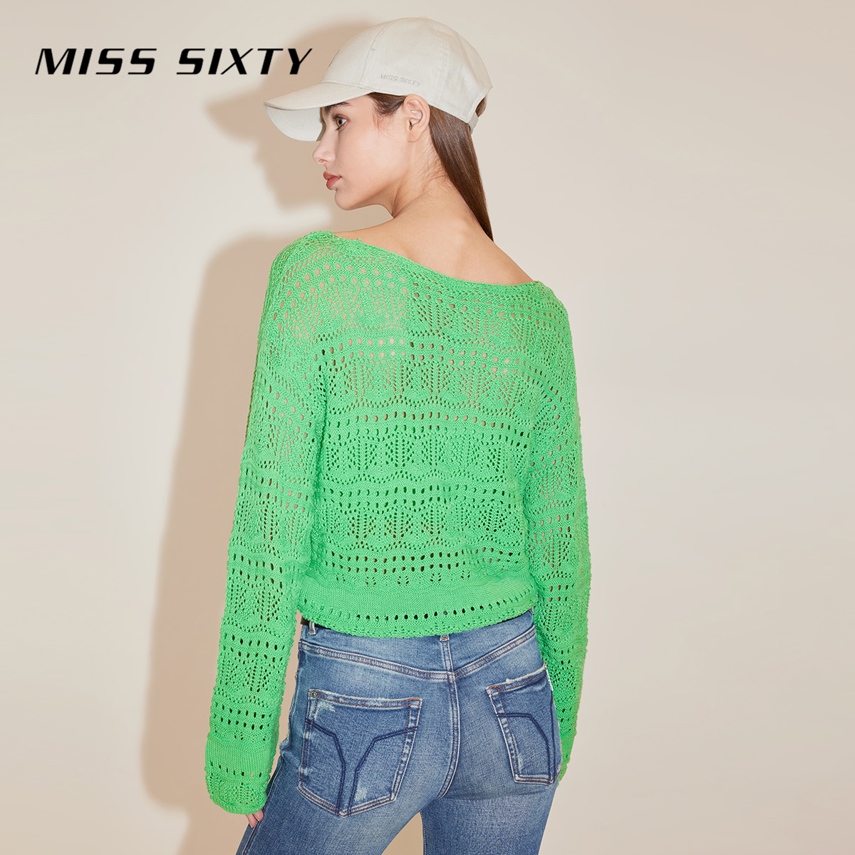 Miss Sixty长袖针织衫女V领套头上衣抽绳镂空性感附抹胸背心毛衣