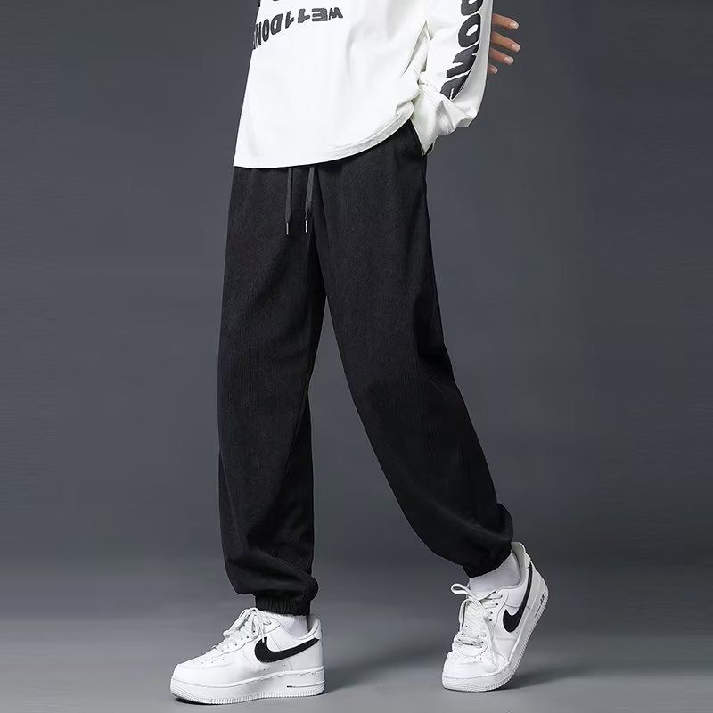 灯芯绒裤子男秋季宽松直筒垂感阔腿卫裤男款加绒运动休闲长裤男生