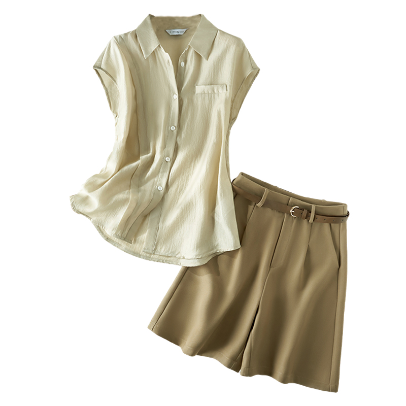 IHIMI海谧气质天丝衬衫短裤套装女2025夏季新款轻薄法式别致上衣
