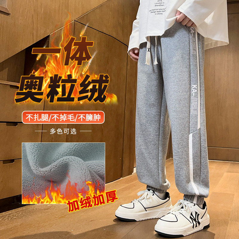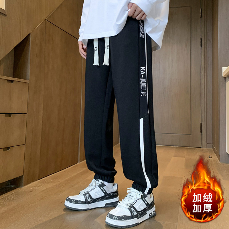 青少年卫裤男款冬季2025初高中学生加绒运动裤加厚休闲长裤子以純