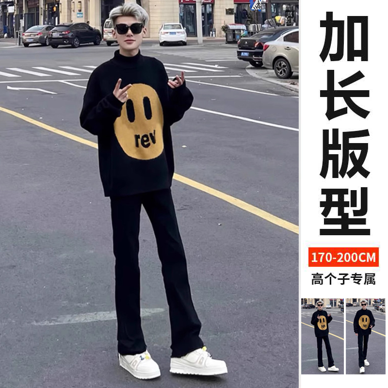 加长版微喇黑色牛仔裤男夏季薄款超长190高个子180休闲裤子110cm