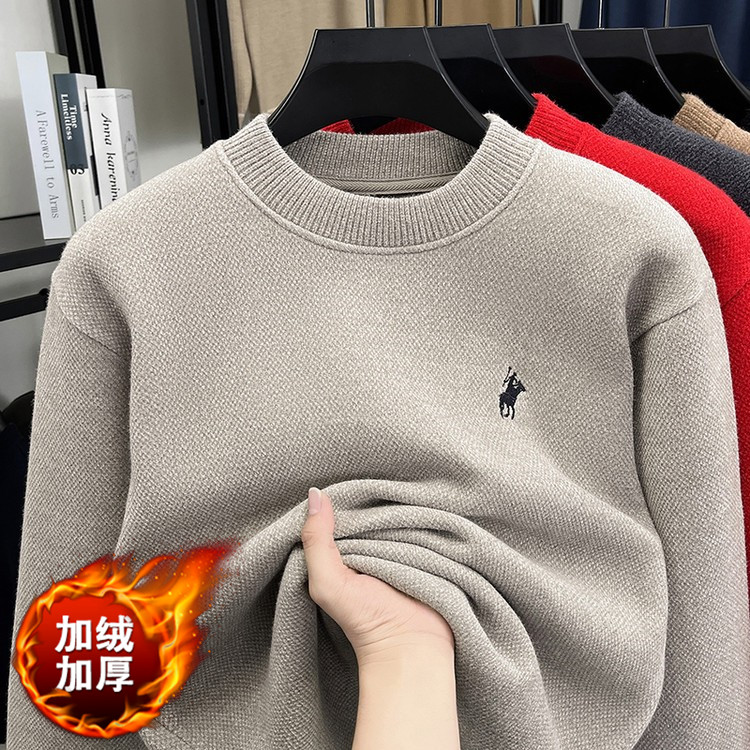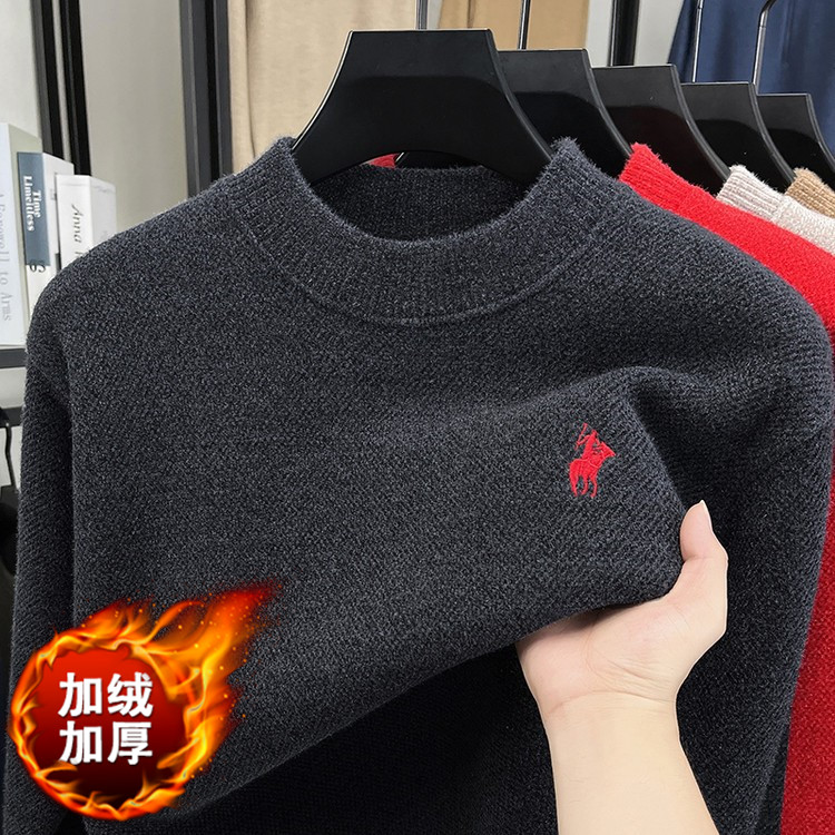 冬季男士半高领雪尼尔毛衣中年加绒加厚休闲一体绒保暖针织打底衫
