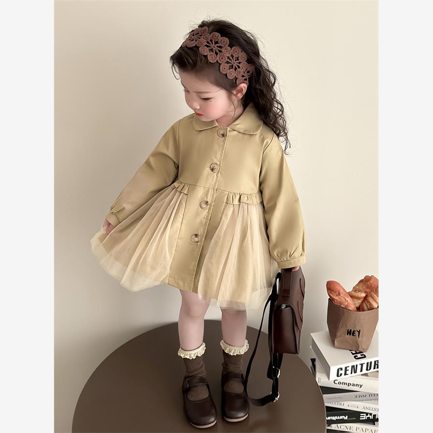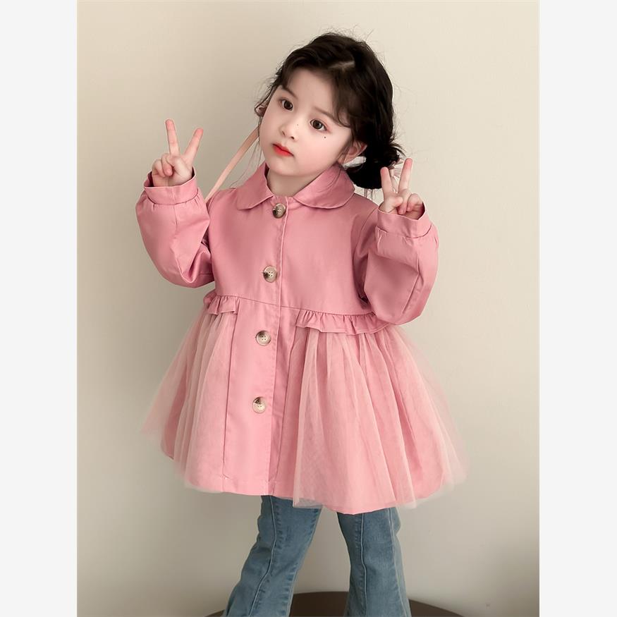 女童秋装2025新款外套风衣女宝宝秋季洋气韩版儿童中长款春秋上衣