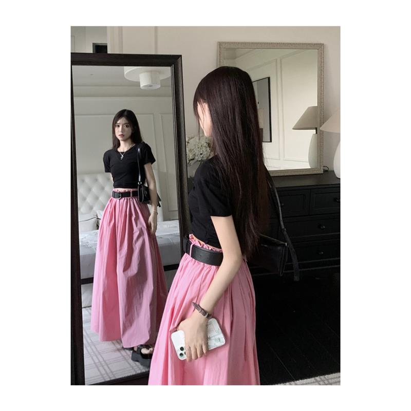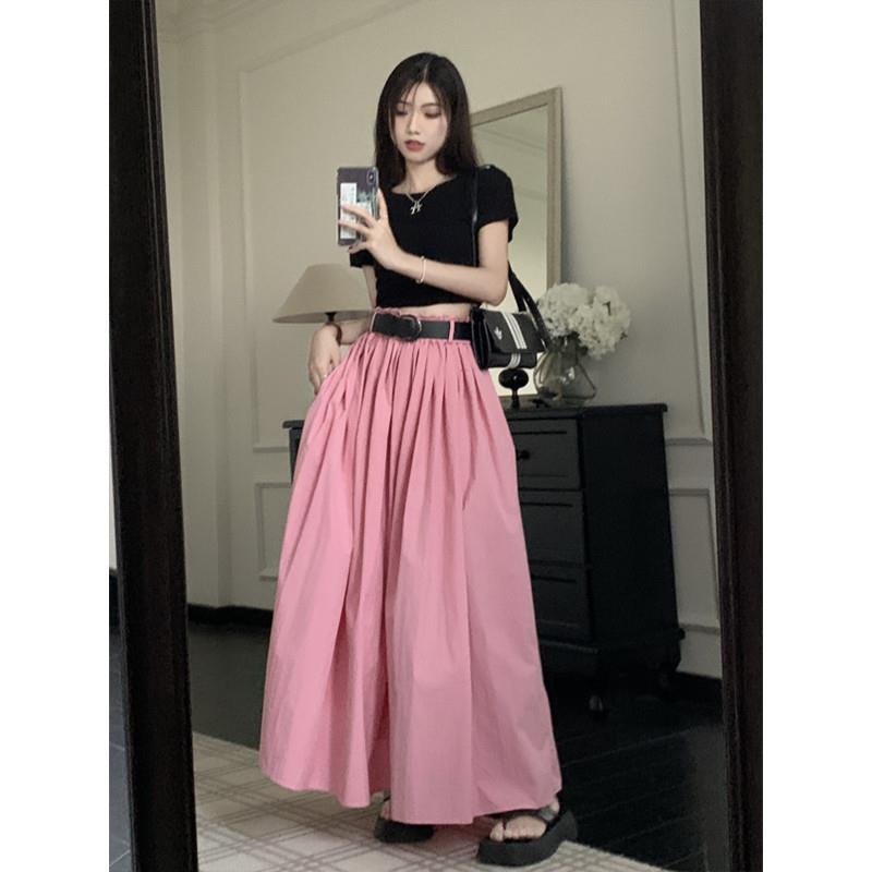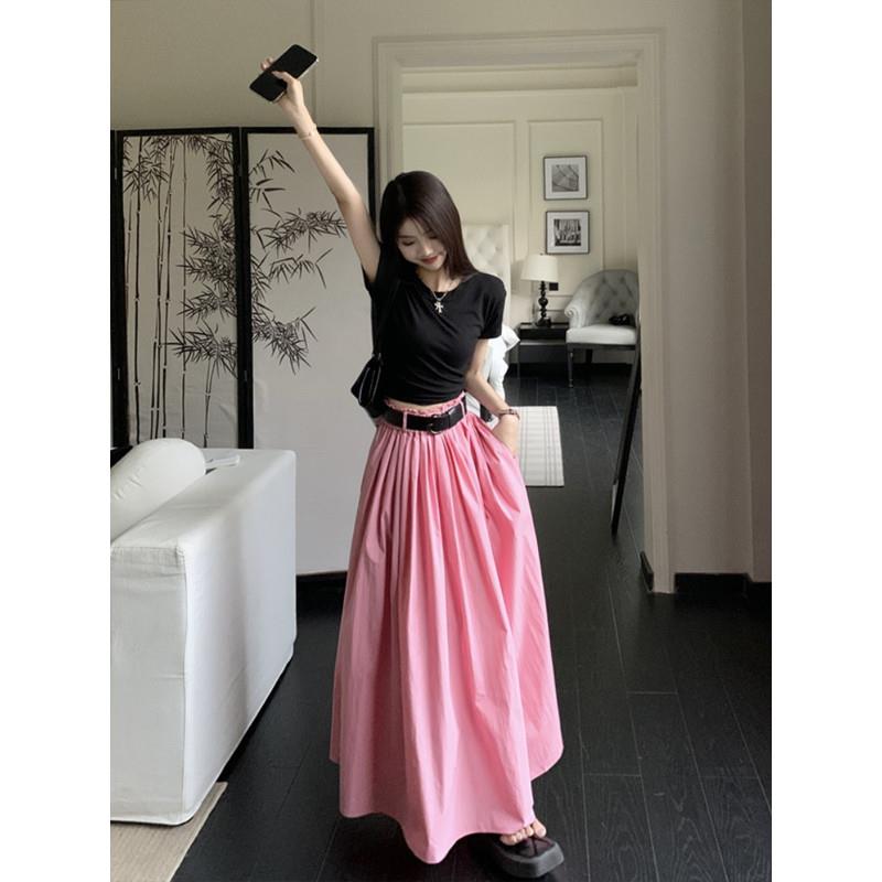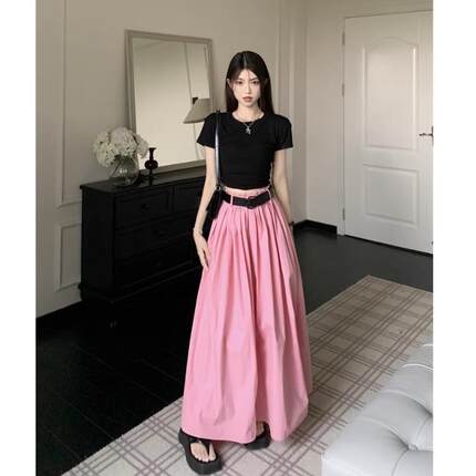 法式工装粉色半身裙女春夏季新款a字百褶裙气质半裙高级感伞裙子