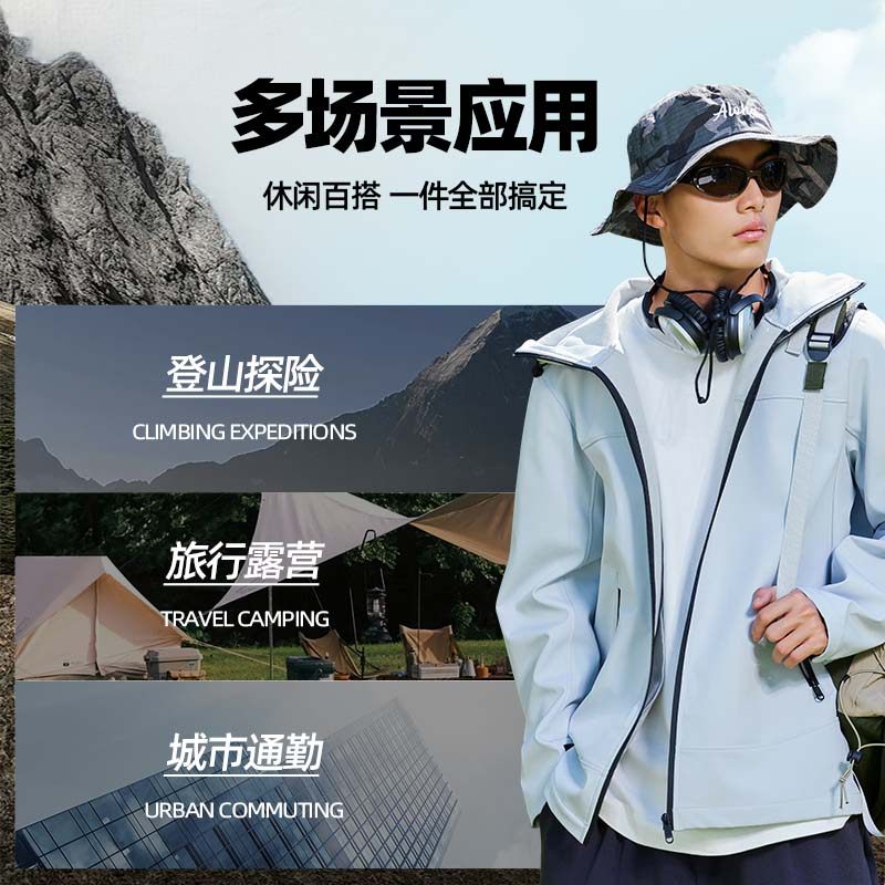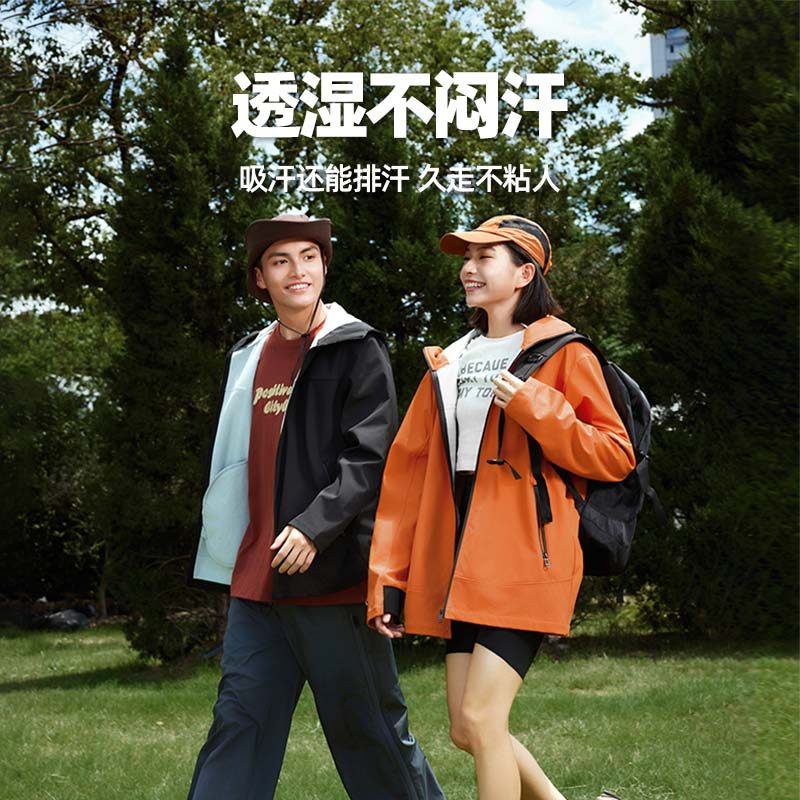 GV真维斯男士冲锋外套秋冬季保暖加绒加厚连帽夹克男款三防衣服B