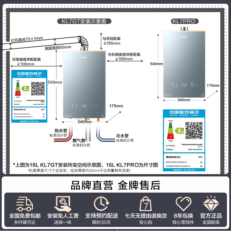 [KL7升级]海尔静音王燃气热水器KL7GT家用天然气恒温增压零冷水