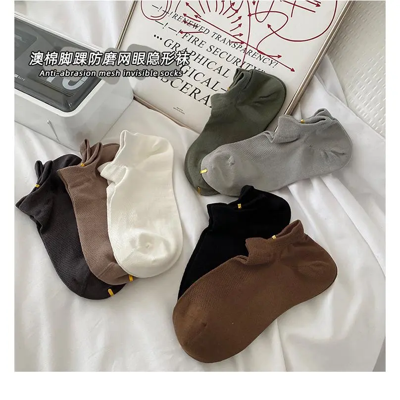 春夏男袜子新款澳棉透气吸汗脚踝防磨网眼男士隐形船袜